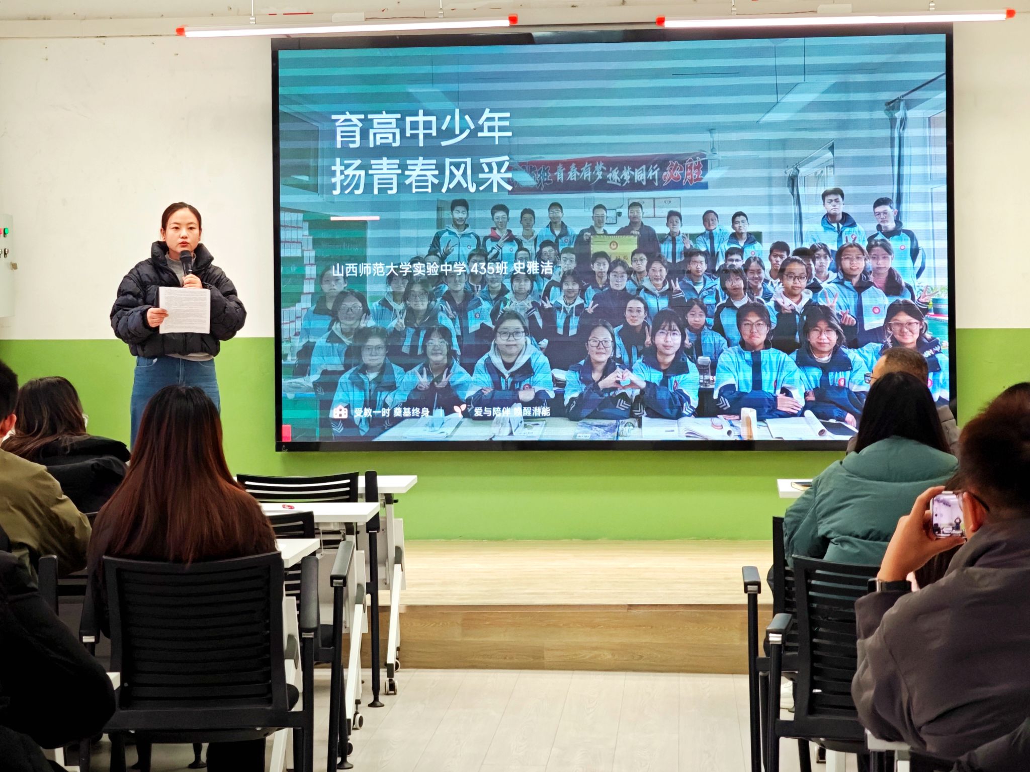史雅洁老师以“育高中少年,扬青春风采”为主题分享心得。她坚信教育是生命的整体唤醒,以“夸夸卡”传善意、评先选优树标杆、互帮互助凝合力,构建有温度的班级共同体;通过规范错题本、推行小组互助、引导自主规划,助力学生养成良好学习习惯;借班级演讲练表达、深化家校沟通聚共识,将规则意识、自信心态与正能量价值观根植学生心中,涵养出“一群人、一条心、一起拼”的优良班风。