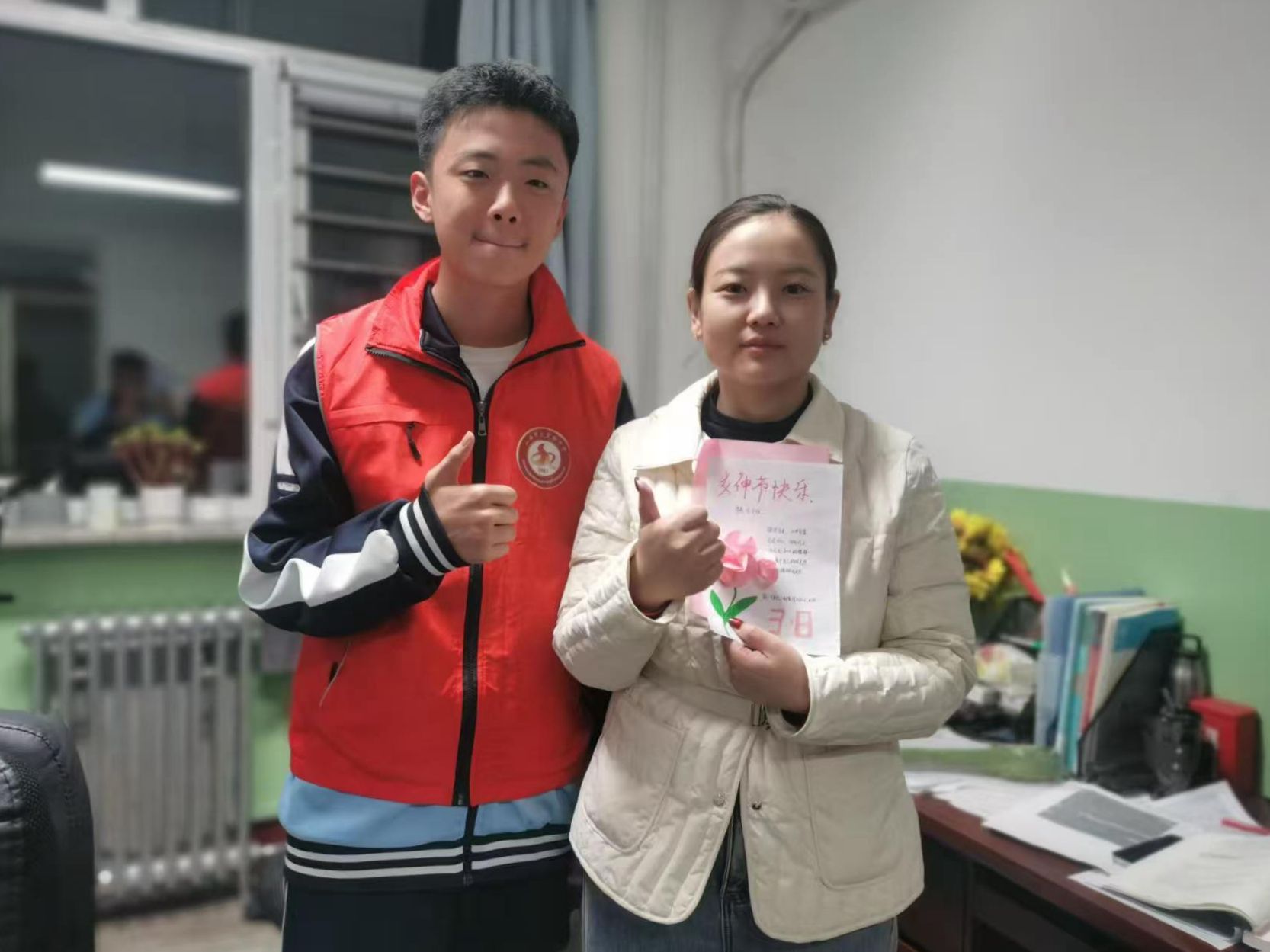 为庆祝第116个“三八”国际劳动妇女节,校青年志愿者协会与学生会联合策划了“情暖三八,爱心送福”特别活动。同学们亲手设计、精心制作了手工贺卡,一笔一划都饱含真诚,小小卡片承载着学子对辛勤育人的女教师们最真挚的感激与崇敬。这份别出心裁的节日礼物,没有华丽的包装,却有着最动人的温度,让温暖在师生间静静流淌,也让志愿服务蕴含的感恩与敬意在校园中生动传递。