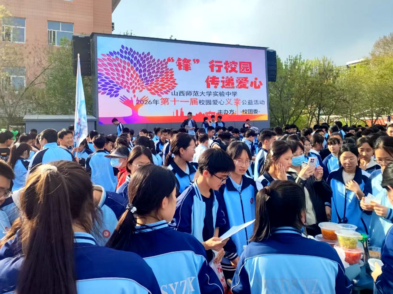 4月1日下午,我校第十一届校园爱心义卖公益活动如约而至,为学雷锋活动月画上了浓墨重彩的一笔。活动现场暖意融融、爱心汇聚,全体初一、初二、高一年级各班学生及各社团积极参与。开幕式上,校团委书记王晓杰围绕活动实效、安全与秩序等进行动员,殷切号召同学们以点滴善举凝聚大爱,用实际行动营造文明向善的校园氛围。