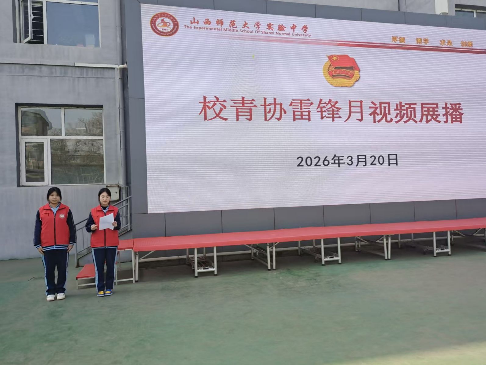 活动月期间,校园内处处洋溢着浓厚的学雷锋宣传氛围。一方面,校园多媒体平台滚动播放雷锋事迹纪录片及新时代榜样人物故事短片,用直观生动的影像,让雷锋精神直抵人心;另一方面,校园广播站特设雷锋主题系列节目,定时播送雷锋故事、名言警句,分享校内志愿服务中的暖心瞬间。“光影”与“声波”交织,让雷锋精神如同春风细雨,润物无声地浸润校园每一个角落,深深根植在每一位学子心中。