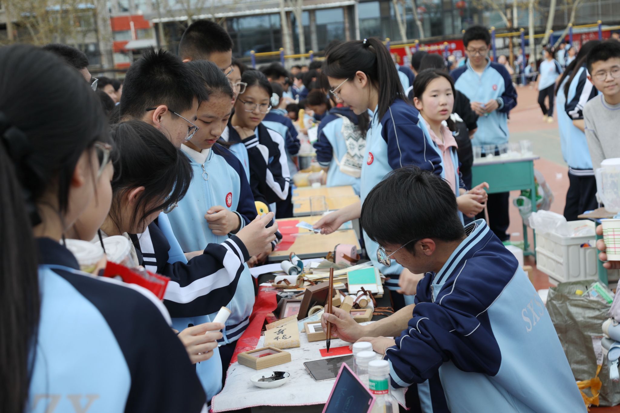 各班级与社团摊位创意十足、各具特色,书籍、手作、文创等物品琳琅满目,现场互动不断,气氛热烈。本次活动还创新实施“拾光留爱·贴纸印记”爱心循环机制,同学们通过捐赠、购买、服务与互动获取“锋行”贴纸,构建“付出—记录—激励”的爱心闭环,有效激发了师生的参与热情。据悉,爱心义卖所得款项将继续投入“锋行盛夏”关爱环卫工人计划,在公开监督下,将同学们的爱心转化为对城市美容师的持久关怀,让雷锋精神在爱心传递中薪火相传。