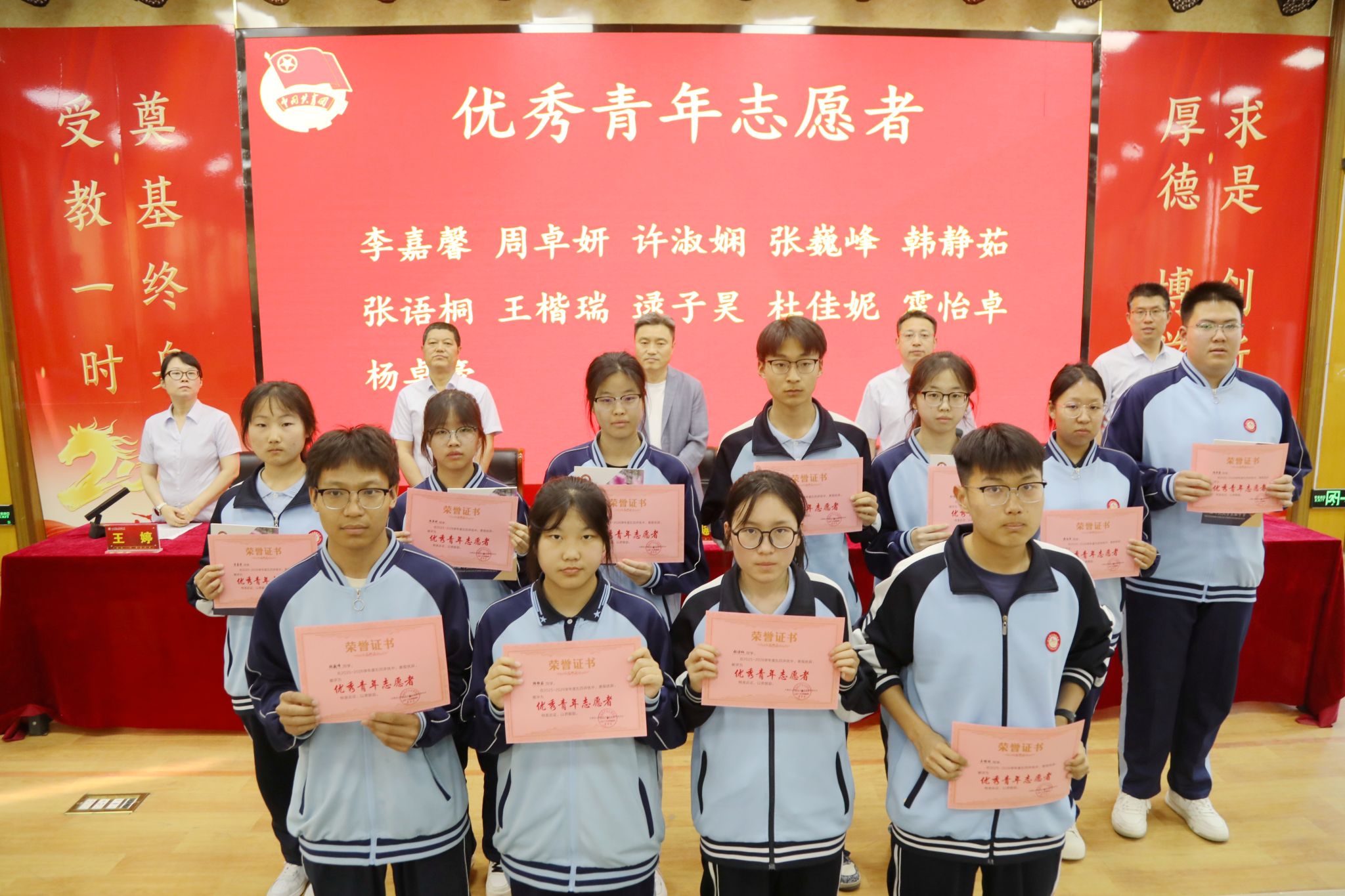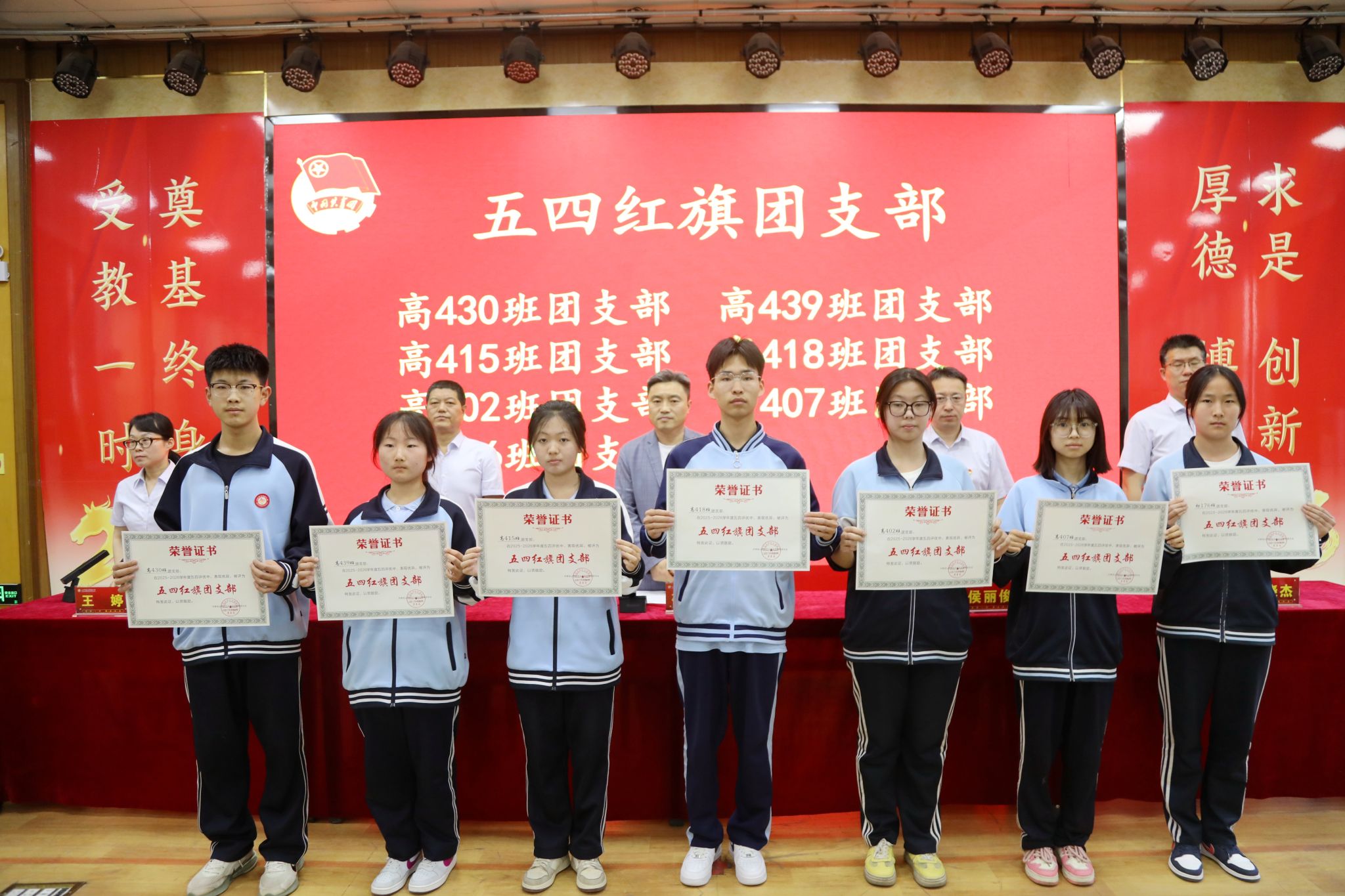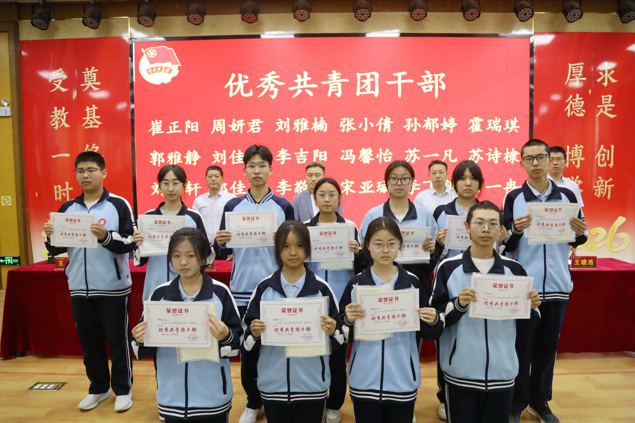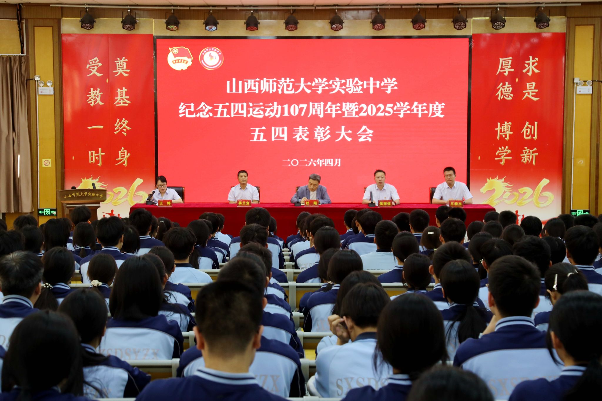 校党委副书记侯丽俊(挂职)宣读了《共青团山西师范大学实验中学委员会关于表彰2025年度五四先进集体和优秀个人的决定》。在欢快的颁奖乐曲中,与会领导依次为获得表彰的先进集体代表和优秀个人颁发荣誉证书,并合影留念。这份荣誉是对他们过去一年努力与付出的肯定,更是对未来接续奋斗的鞭策。