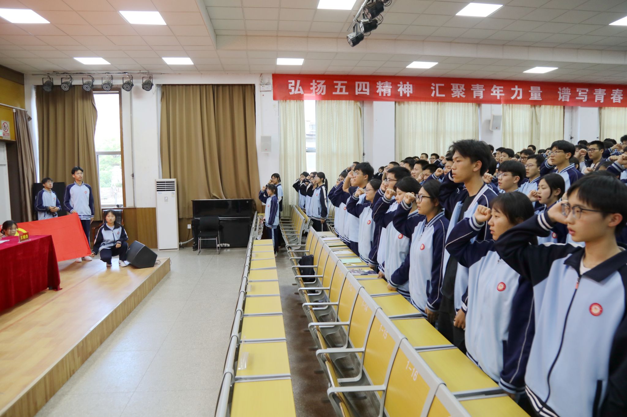 随后,全体团员学生,面向团旗,高举右拳,重温入团誓词。铮铮誓言铿锵有力,展现了团员学生不忘初心、紧跟党走的坚定信念。