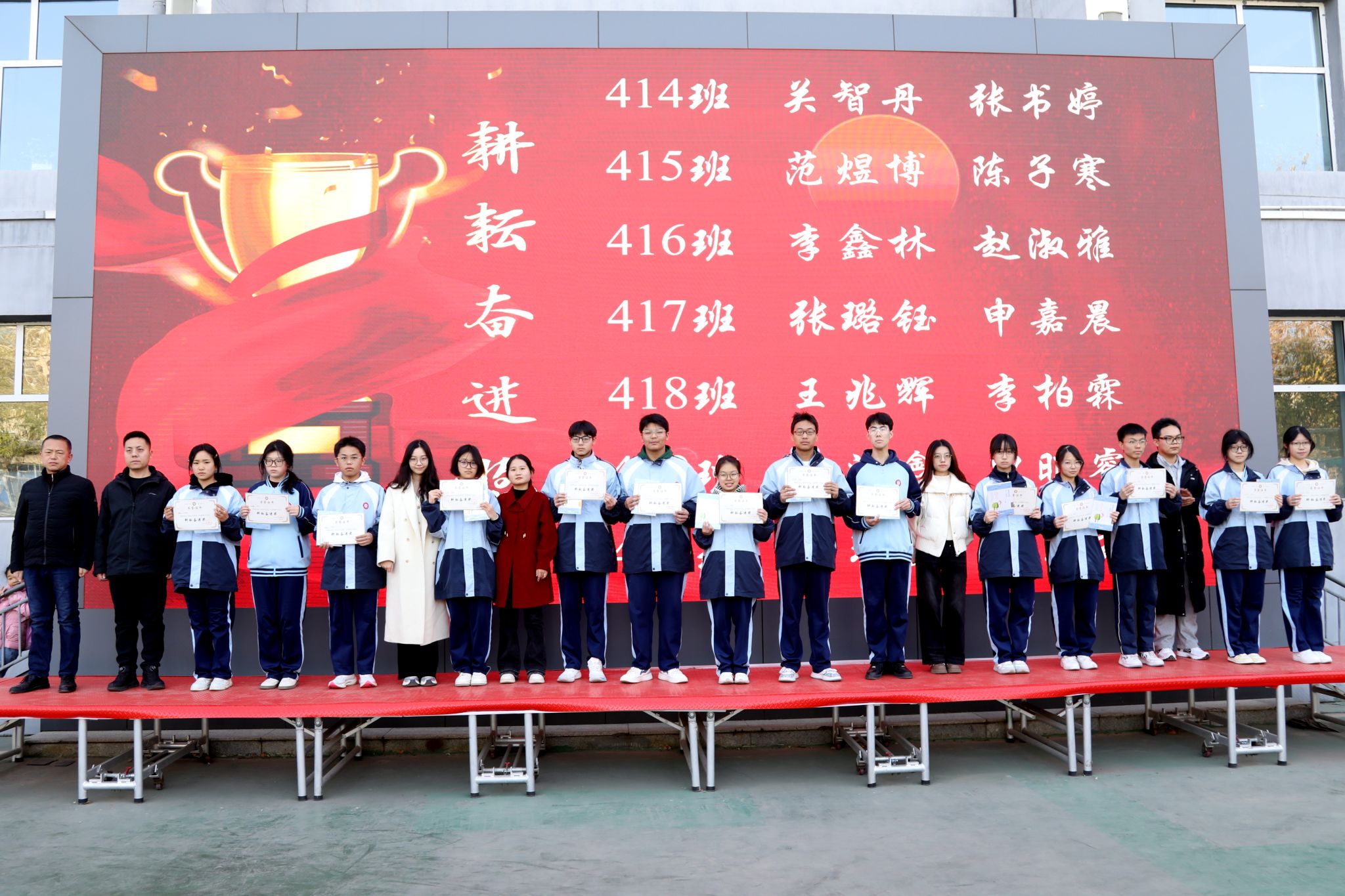 11月30日下午,高二年级“半程耕耘结硕果,青春奋进再出发”期中表彰大会在操场隆重举行。副校长武月元、教导处主任李明、高二年级主任刘阳及全体高二师生参会,见证榜样荣光。