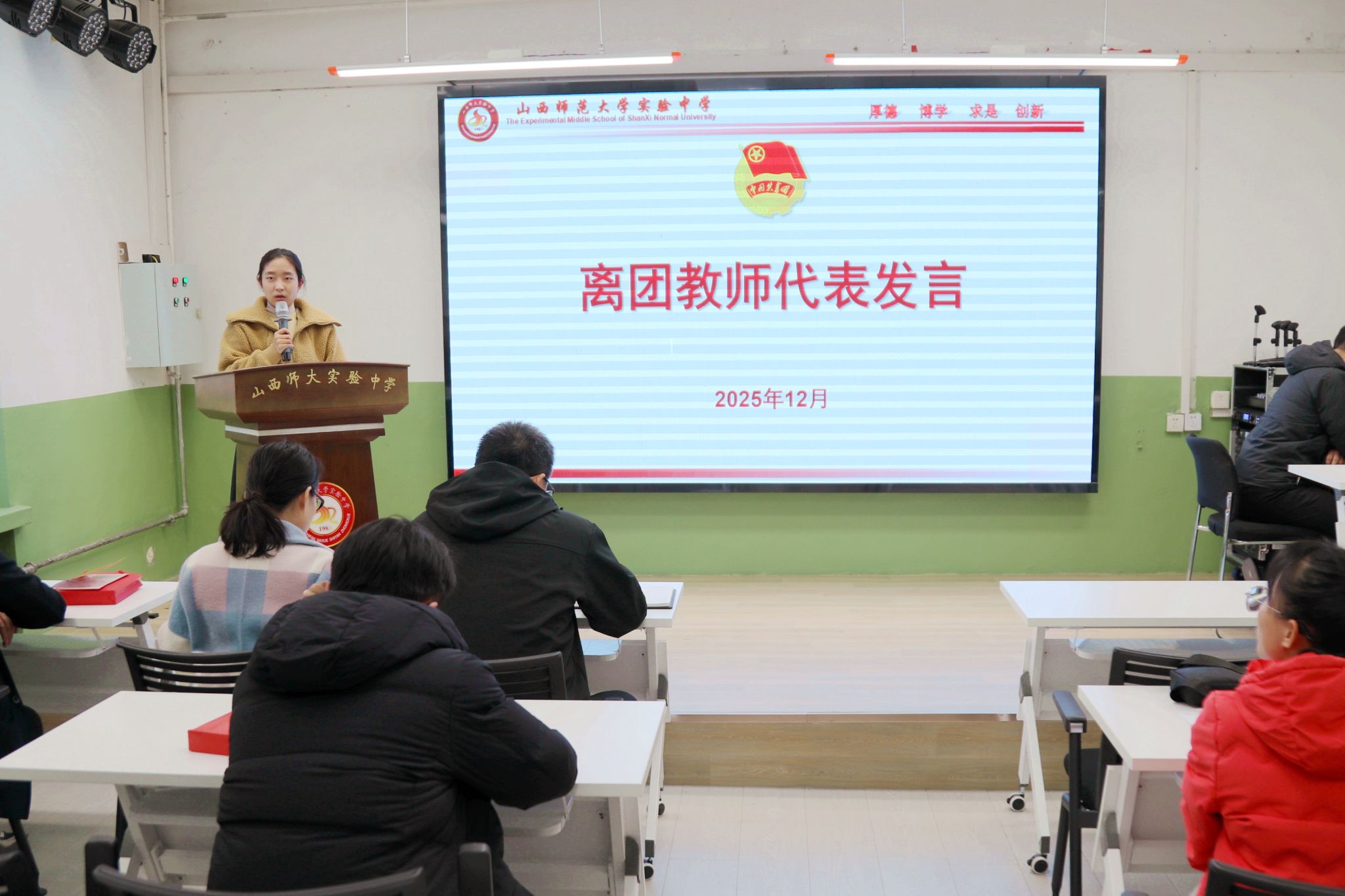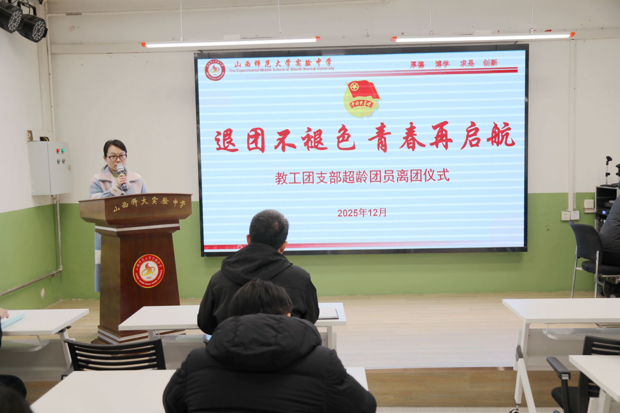 大会在嘹亮的团歌声中圆满结束。此次超龄团员离团仪式暨支部换届选举大会进一步增强了团员教师的荣誉感、使命感和归属感,也为学校共青团事业注入了新的活力。
