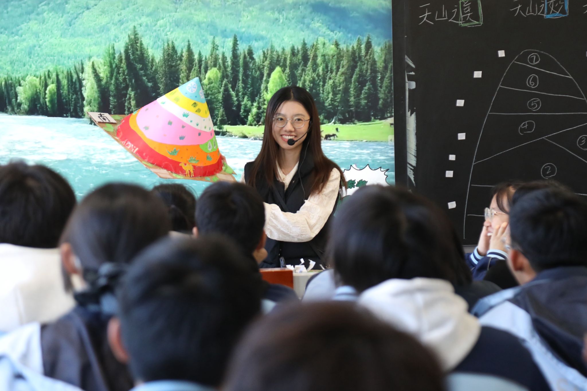 地理组冯舒琪老师以“美—妙—绝”三境贯穿天山教学,巧妙运用实物教具与遥感图像对比,引导学生从景观感知深入规律探究,在小组协作与思辨中,自然升华至人地和谐的地理哲学,实现了从感性认知到理性思辨的完整跨越。