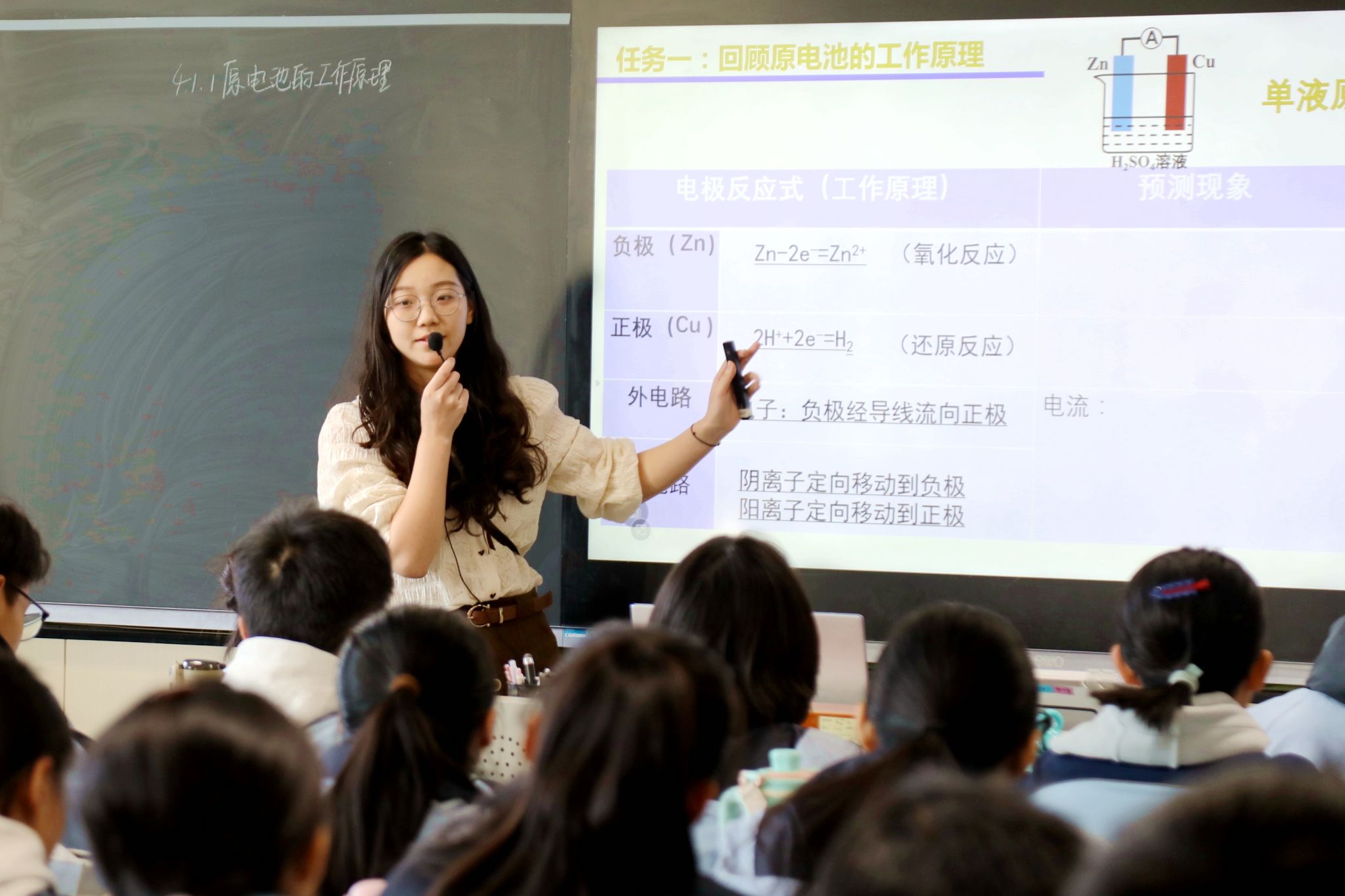 化学组高小茹老师以伏打电堆发展历程为主线,借助AI模拟与数字实验,带领学生探索从单液到隔膜原电池的结构演变,在实践与推演中深化原理理解,渗透科研精神与化学技术的社会价值。
