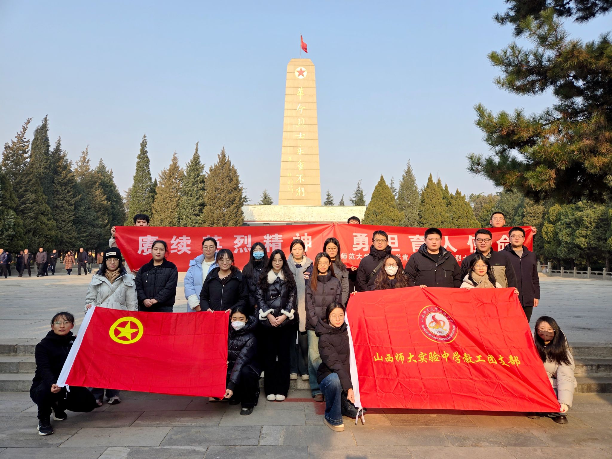 12月10日,我校教工团支部组织全体青年教工团员赴临汾市烈士陵园,开展“缅怀先烈铸师魂 铭记历史育新人”主题教育活动。通过集体默哀、重温入团誓词、参观纪念馆等仪式,引导青年教师从民族的苦难与荣光中汲取精神养分,进一步坚定立德树人的初心使命,将爱国情怀转化为教书育人的实际行动。