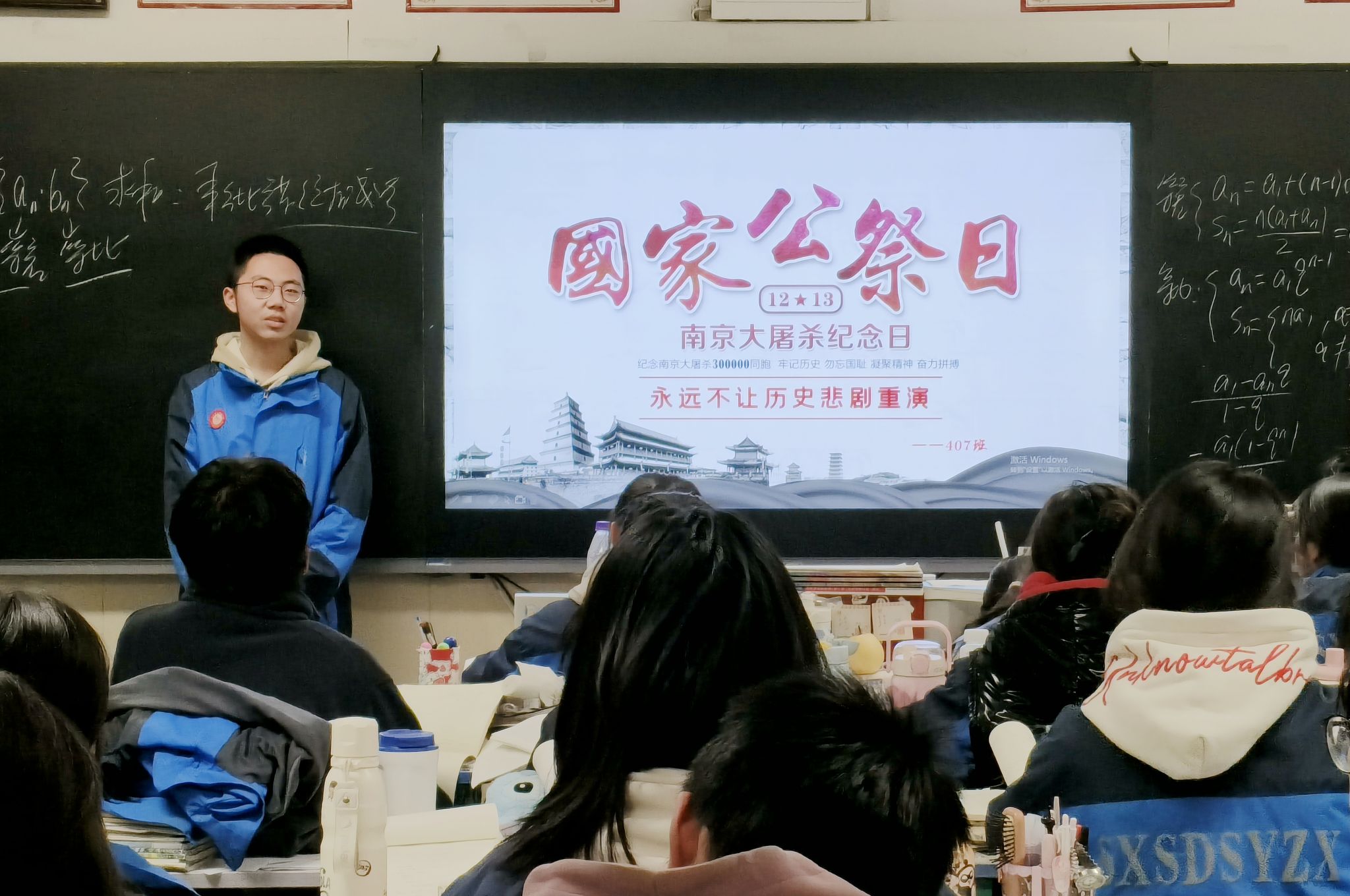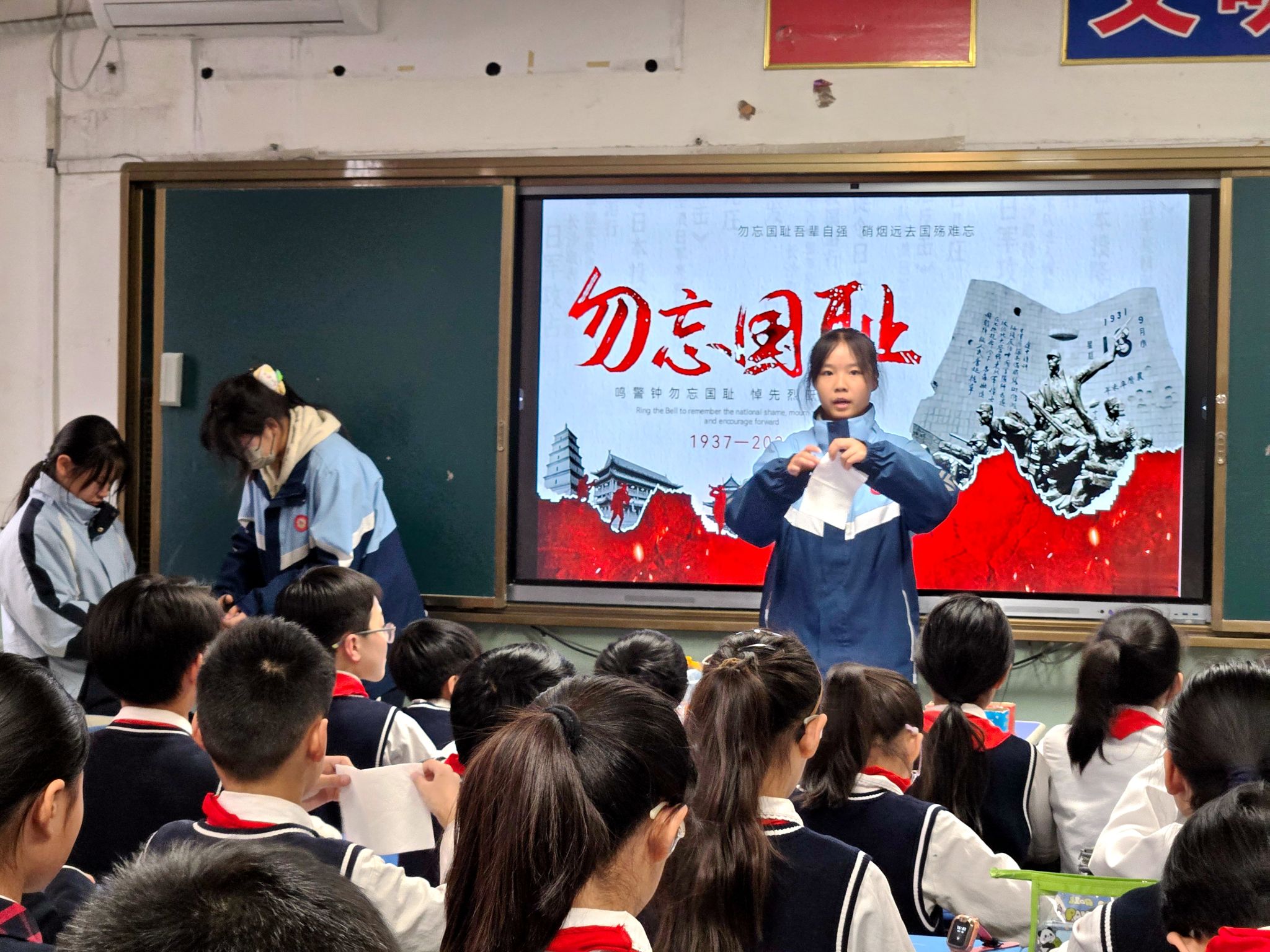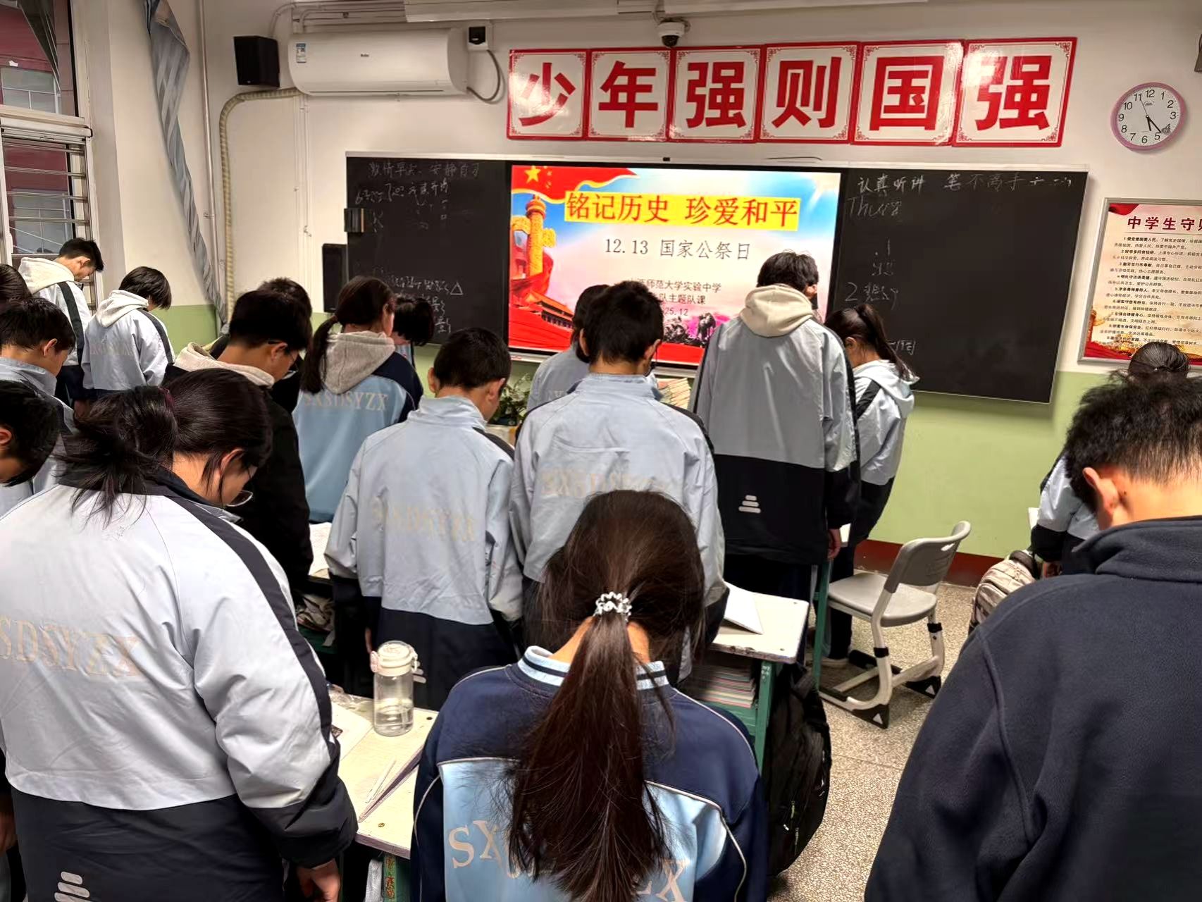 各年级团支部积极响应校团委号召,结合自身实际开展了形式多样的主题活动。有的班级团支部围绕“国家公祭日的由来与意义”开展主题团课学习;有的团支部举行“红色书籍”分享会,通过文字触摸历史的真实与沉重;还有的通过历史影像展播直观感受那段不容忘却的历史。初中部组织全体少先队员开展“铭记历史 珍爱和平”主题队课学习,通过集体默哀、观看历史影像等环节,让队员们在庄严肃穆的氛围中接受深刻的爱国主义教育和生命教育。