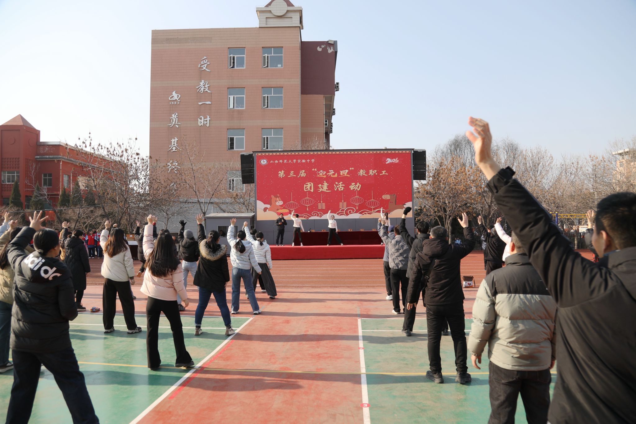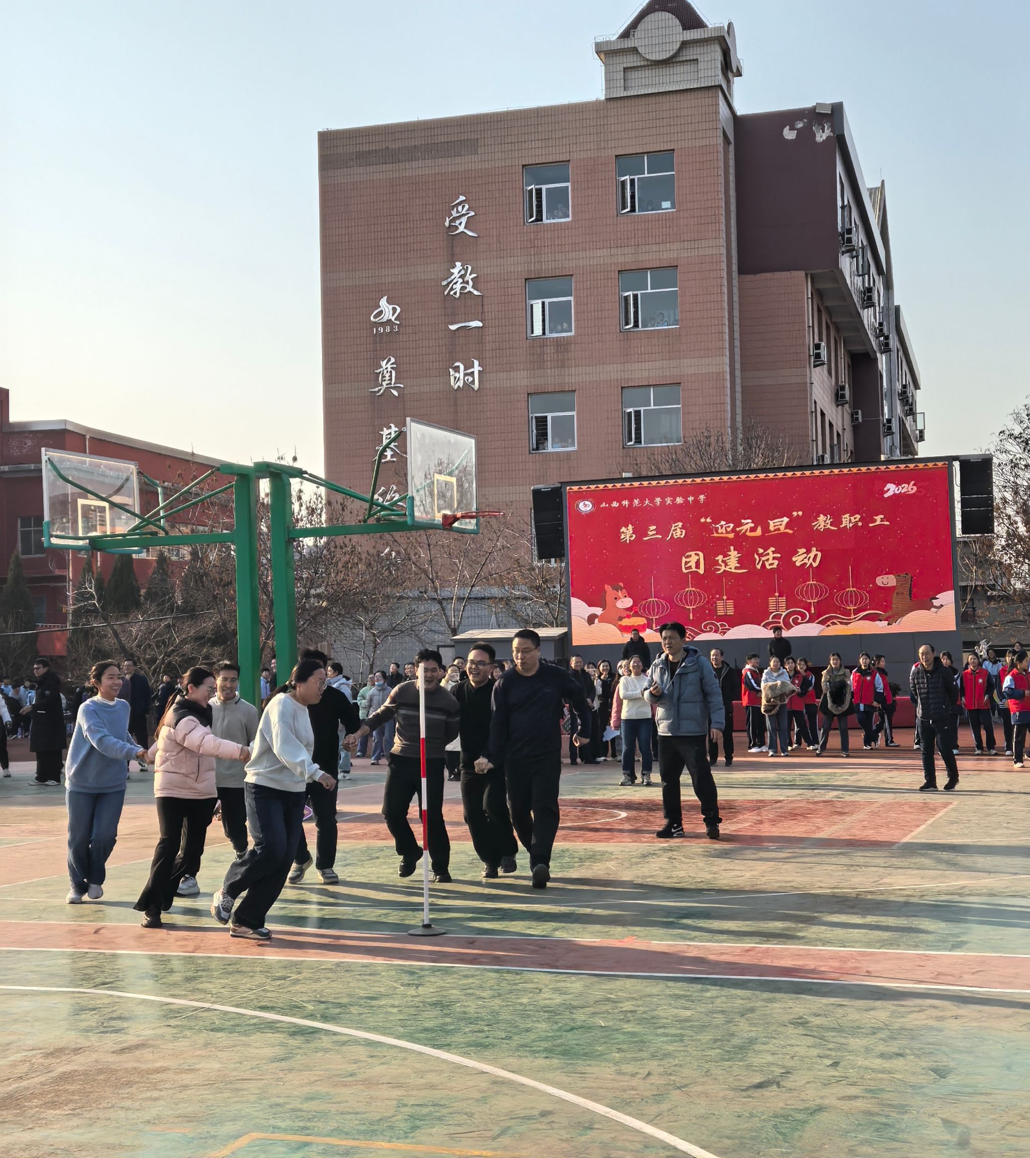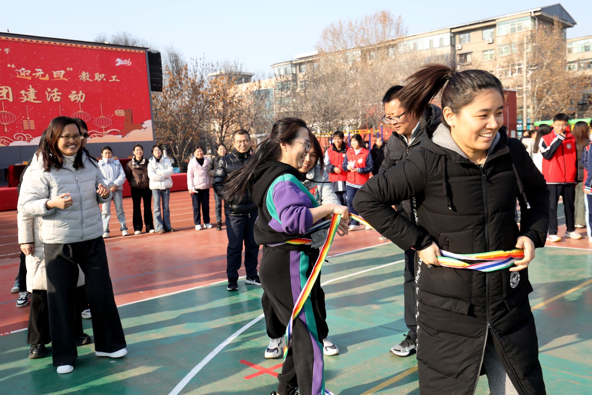 暖阳映操场,师者聚欢颜。12月30日下午,南校区操场上笑语欢腾、活力涌动,我校第三届“迎元旦”教职工团建活动拉开帷幕。