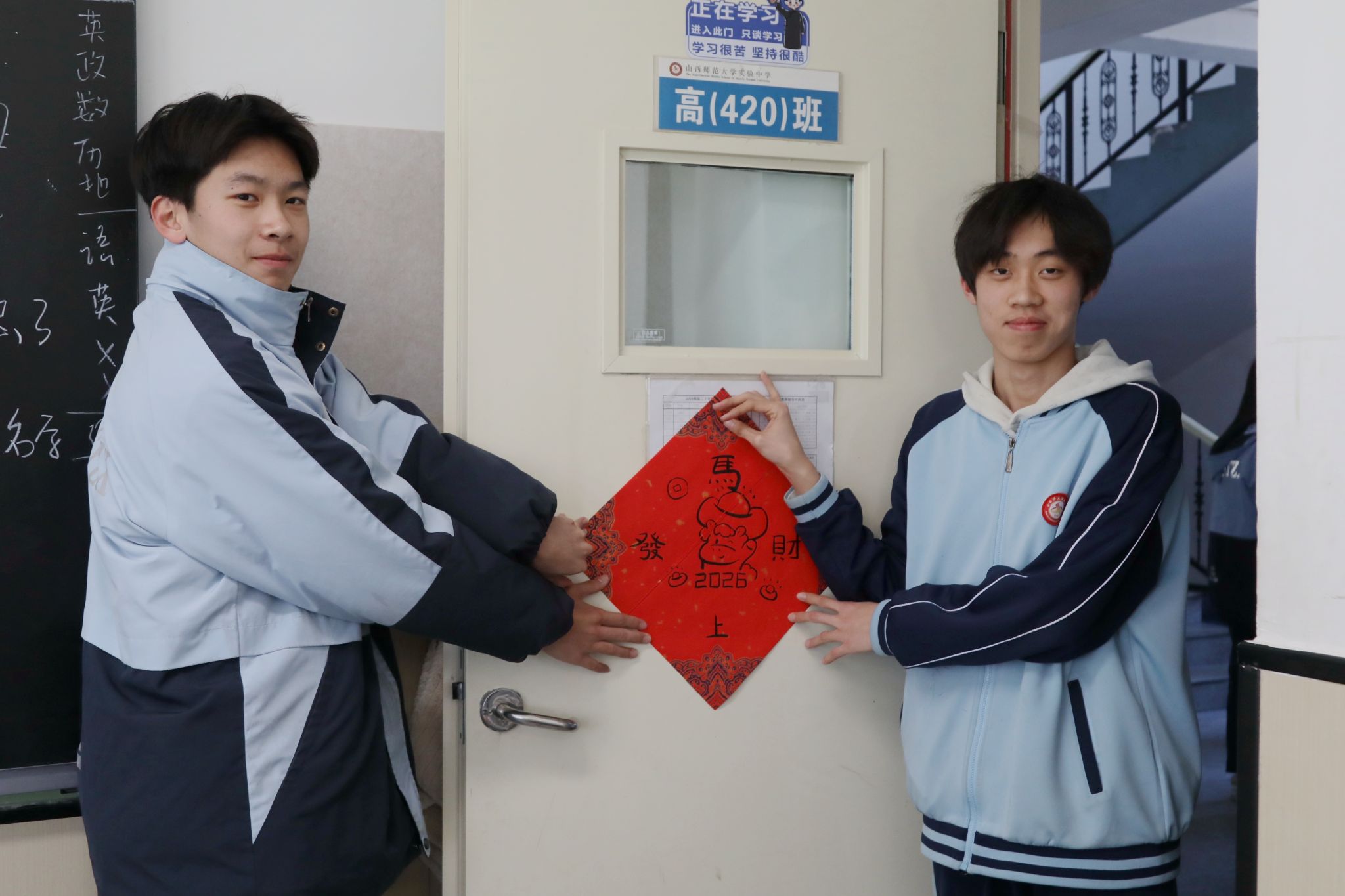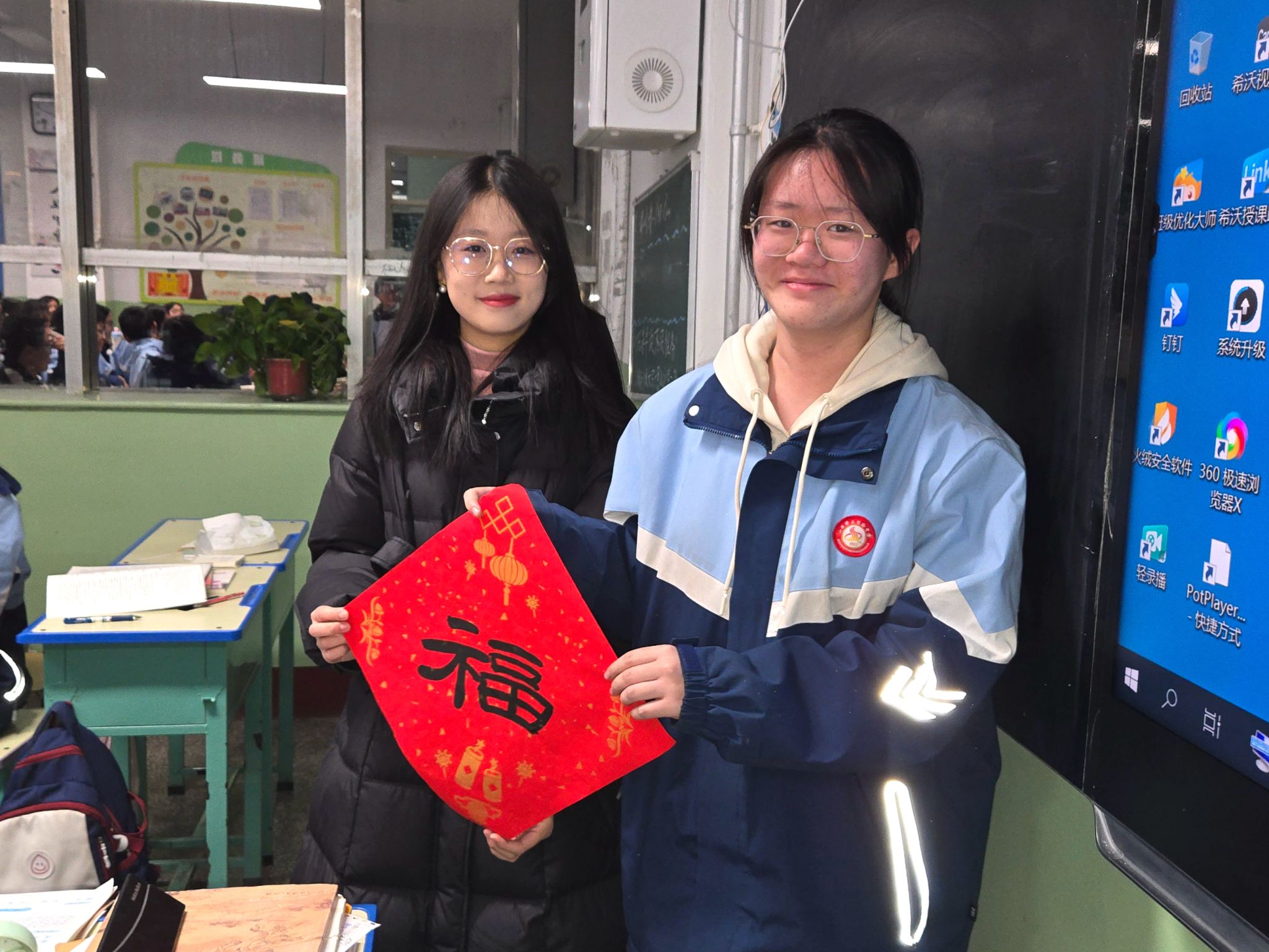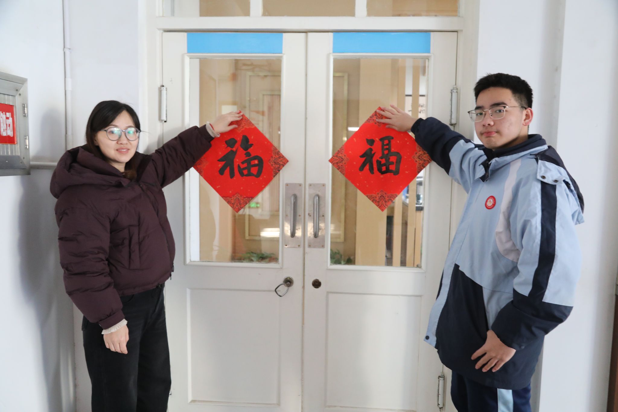 同学们还将亲手书写的福字,送到班级、图书馆、阅览室、老师办公室及保安师傅手中,用暖心行动传递新春祝福与感恩之情。