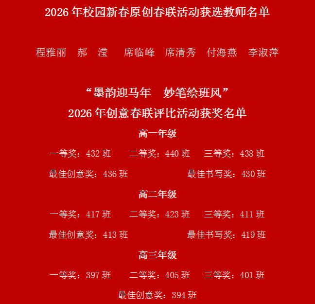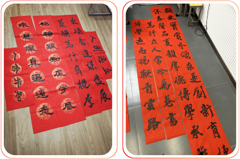 活动前期,学校率先面向教师发起校门及各教学楼春联征集令。老师们踊跃响应、各展才情,将校园文化、教育期许和新春寓意融入创作,作品对仗工整、意境拉满,既彰显育人初心,也饱含新春期许,尽显文化底蕴。获选的优秀春联将在除夕张贴,为校园披上喜庆的盛装。