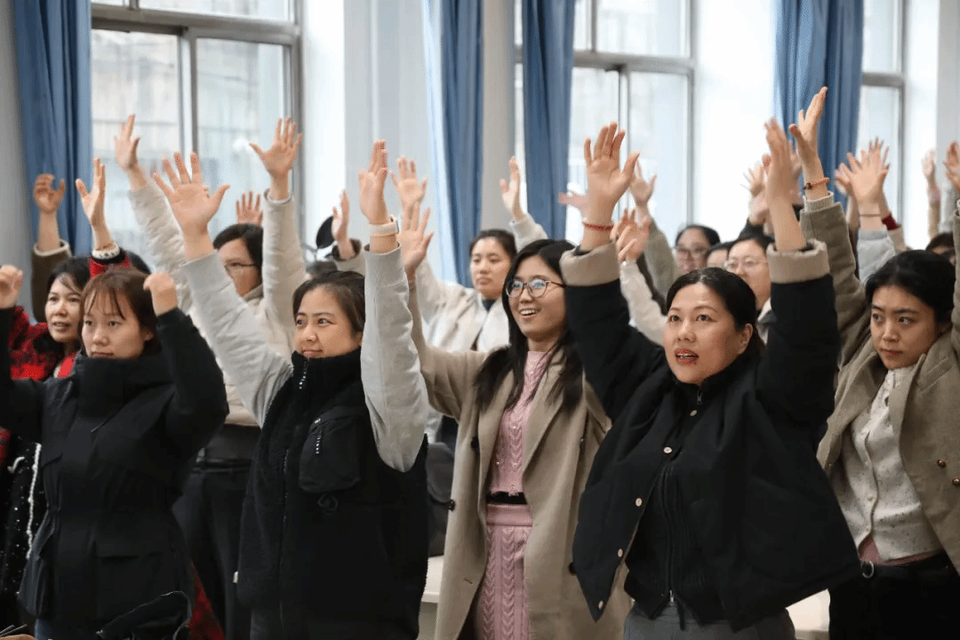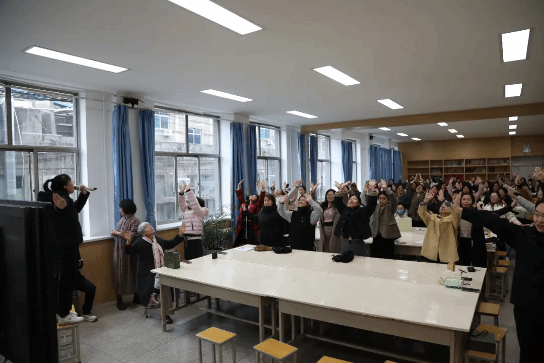 脑力比拼过后,活力健身环节如期而至。体育组“活力女神”刘芳涛带领全体女教职工跳起“拍八虚”健身操,在轻松的动作中唤醒身体活力,赶走工作疲惫。
