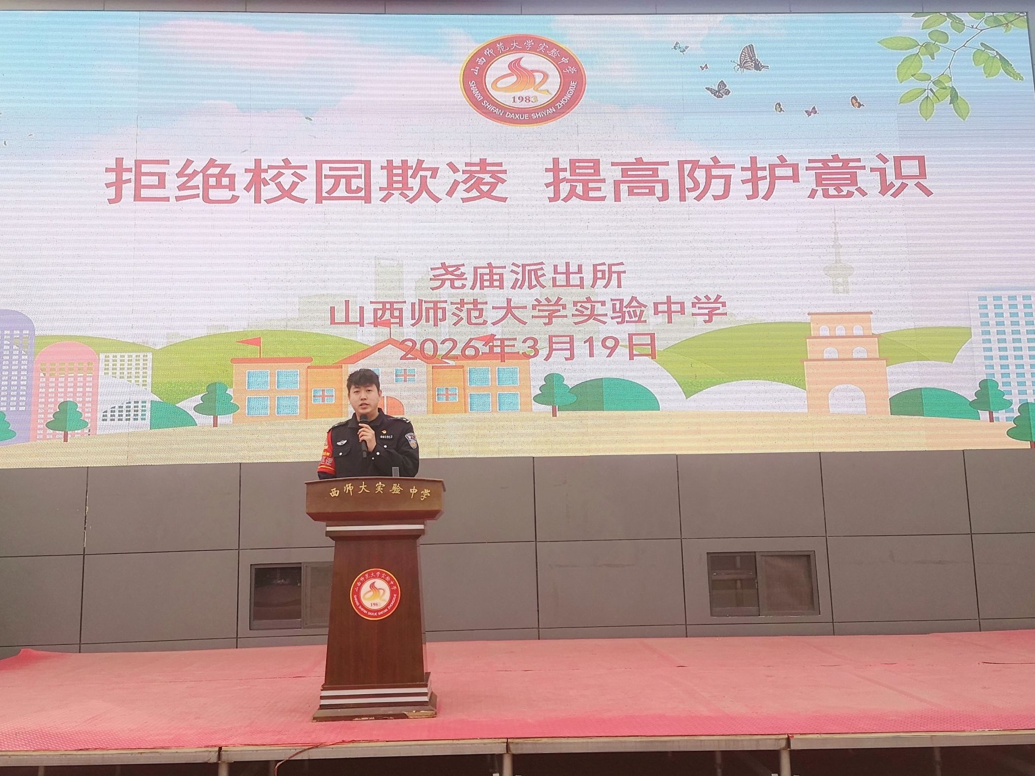 为进一步筑牢校园安全屏障,有效预防和遏制校园欺凌事件发生,3月19日下午,我校政教处邀请尧庙派出所民警黄治伟为初中全体学生带来了一场生动深刻的防欺凌法治讲座。