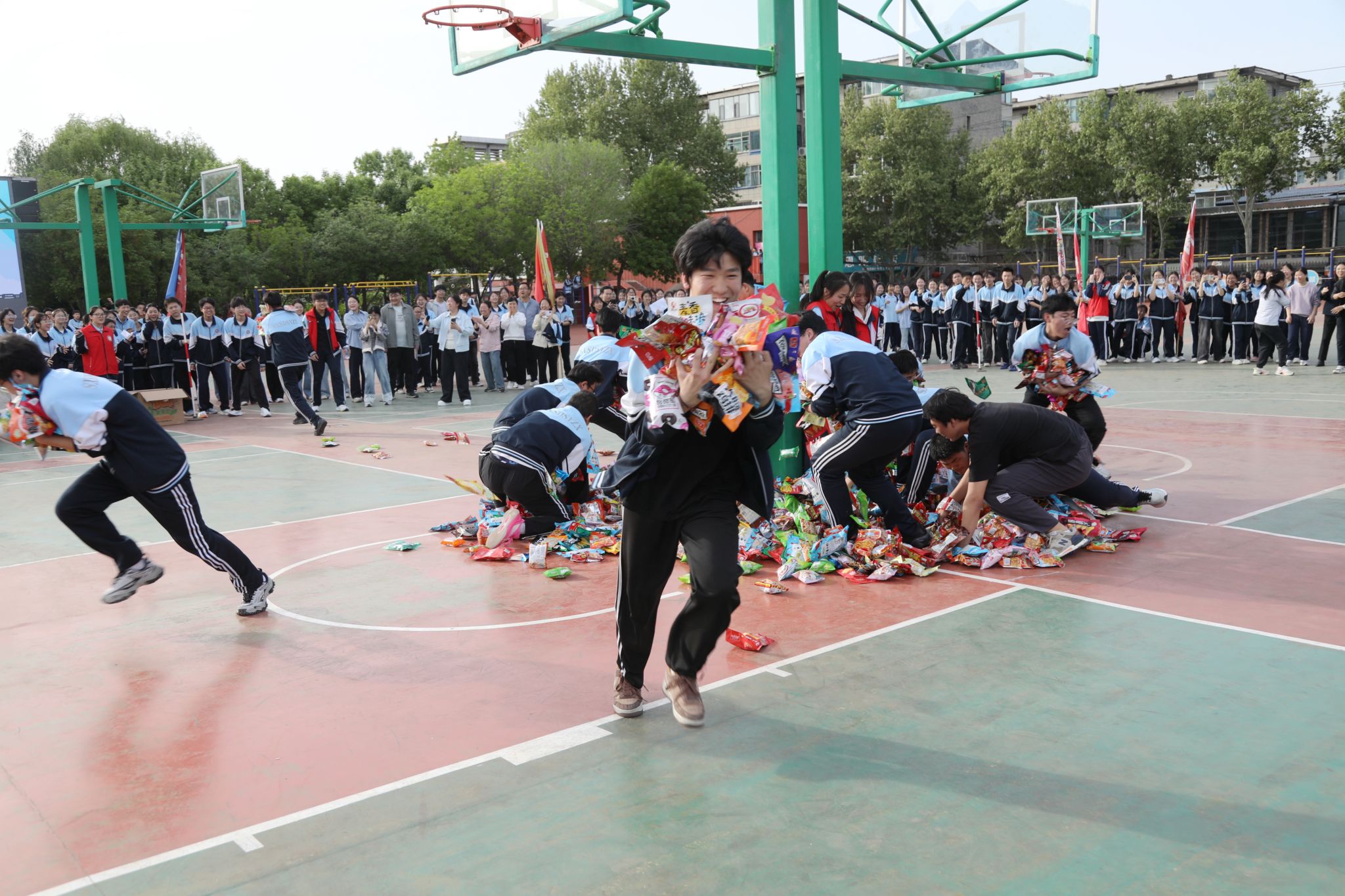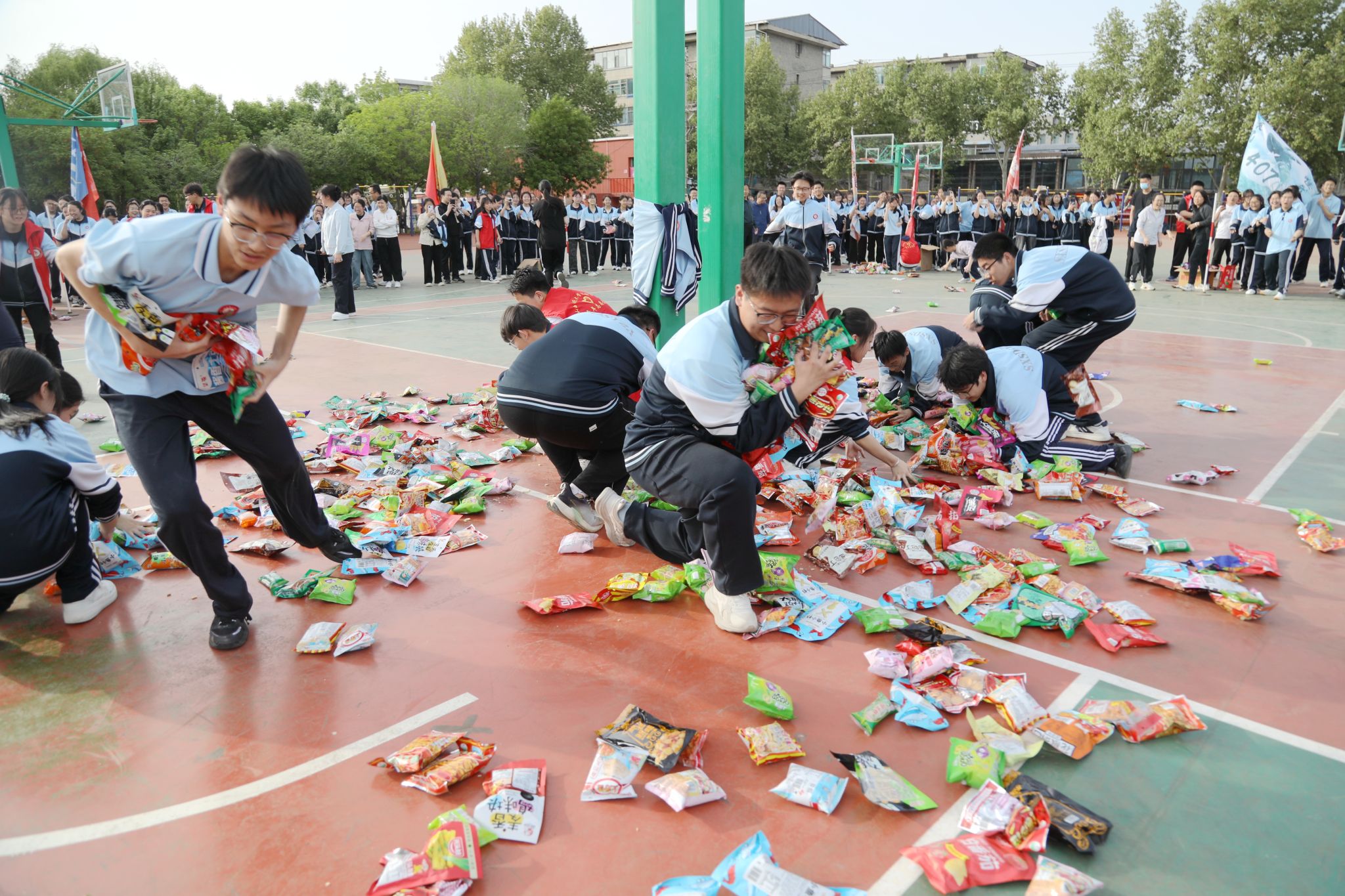 零食大作战,有序争先。分工协作,默契无间;有人负责速度,有人负责稳妥,有人全力守护成果。呐喊阵阵,情谊滚烫。呐喊与欢笑,汇成青春热浪。