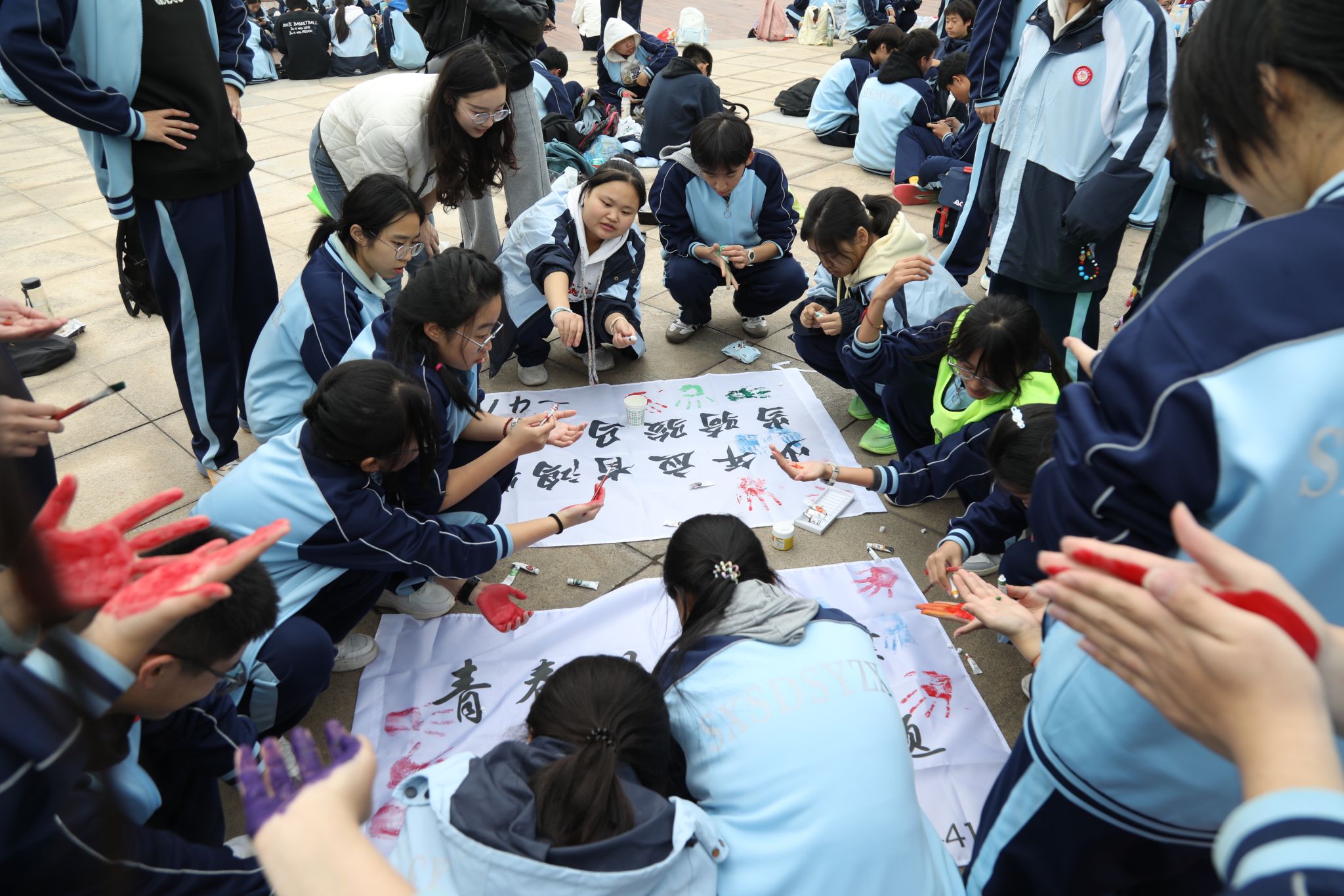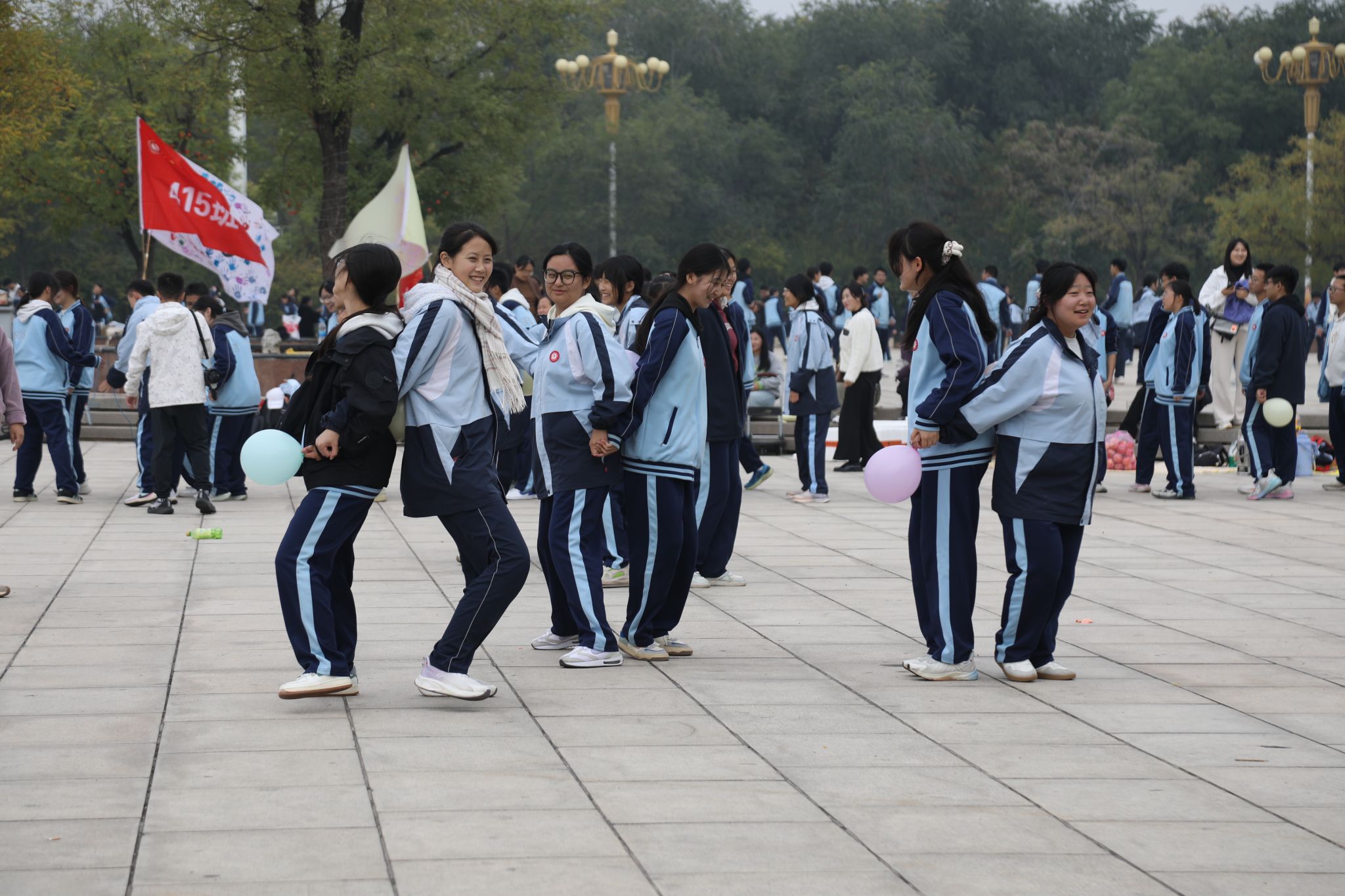 正午时分,队伍顺利抵达九州广场。午餐后,团建活动点燃集体热情:游戏里的默契配合、歌舞中的活力绽放,将徒步的疲惫消融在欢声笑语里。而沿途最温暖的风景,莫过于家长们的守望:道路转角、林荫大道、广场周围,他们拉起“孩子加油”的横幅,备下热水与食物,用默默的守候织就温暖的后盾,让青春的征途绝不孤单。