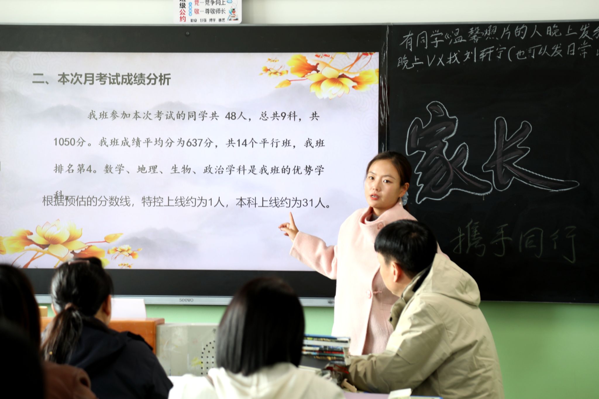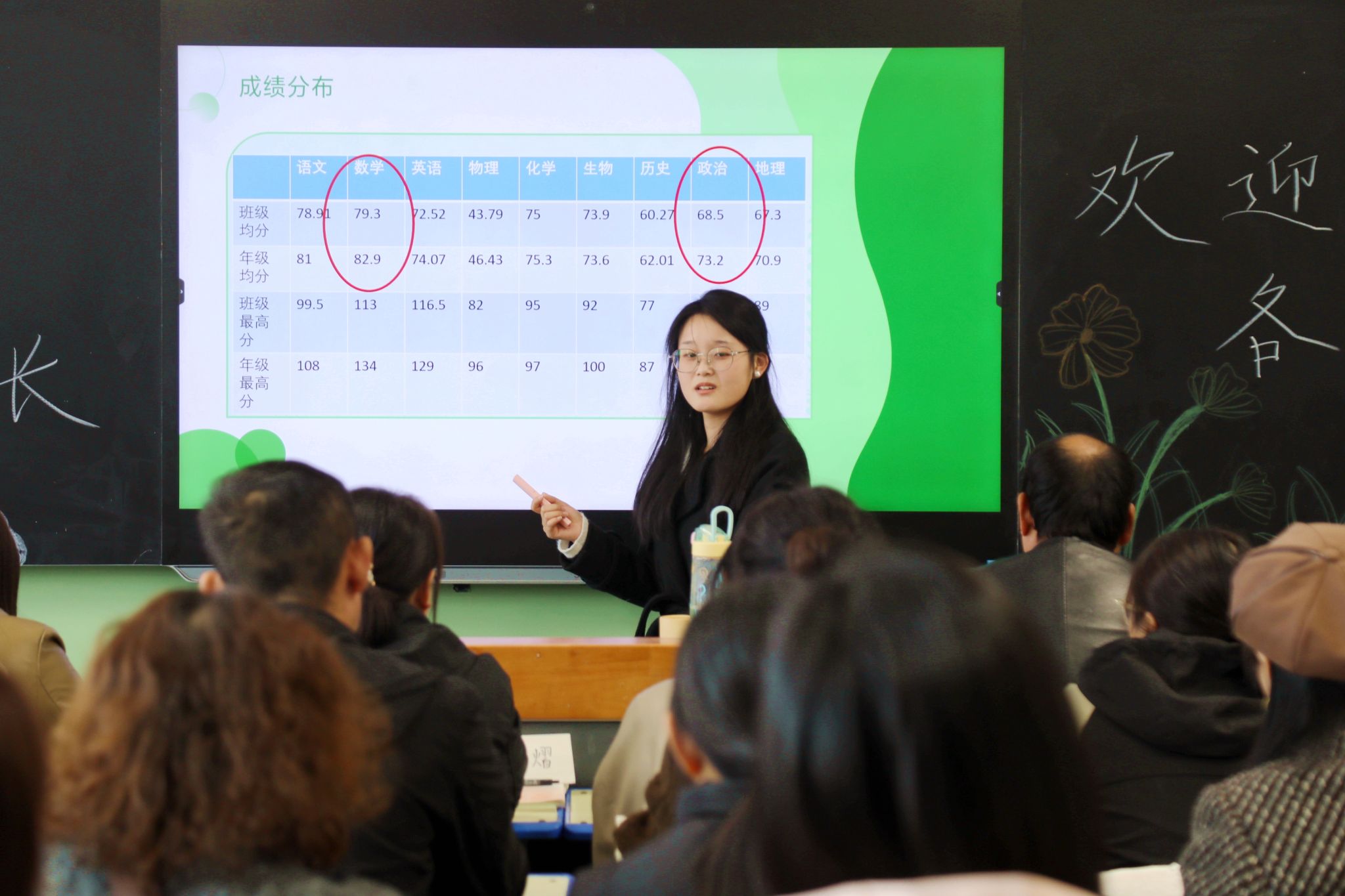 各班教室内,班主任以月考数据为依托,为家长展开专业解读。通过详实的数据剖析,不仅让家长全面掌握孩子的学习近况,更引导大家跳出“唯分数论”,多关注学习习惯养成与心理适应状态,真正立足长远,助力孩子稳步成长。