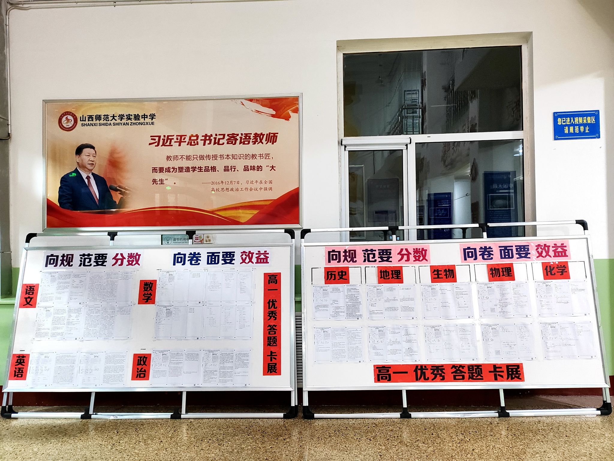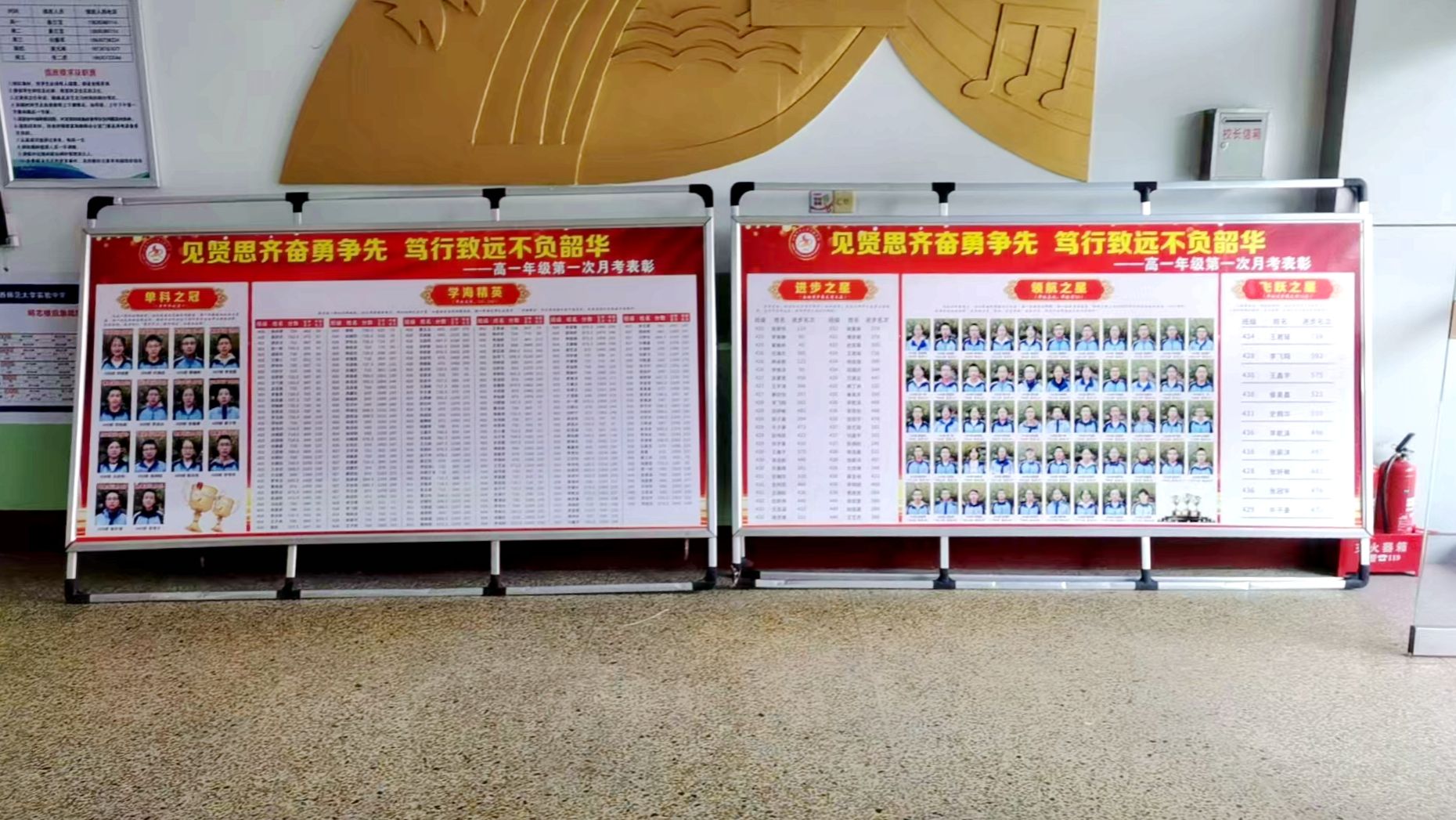 一楼大厅展览区备受瞩目。一侧光荣榜揭晓本次月考“领航之星”“单科之冠”“飞跃之星”“进步之星”名单,一个个名字彰显着学子的勤勉与聪慧;另一侧展示着各学科优秀答题卡,卷面间的工整字迹与清晰思路,见证着他们的成长蜕变与突破时刻。
