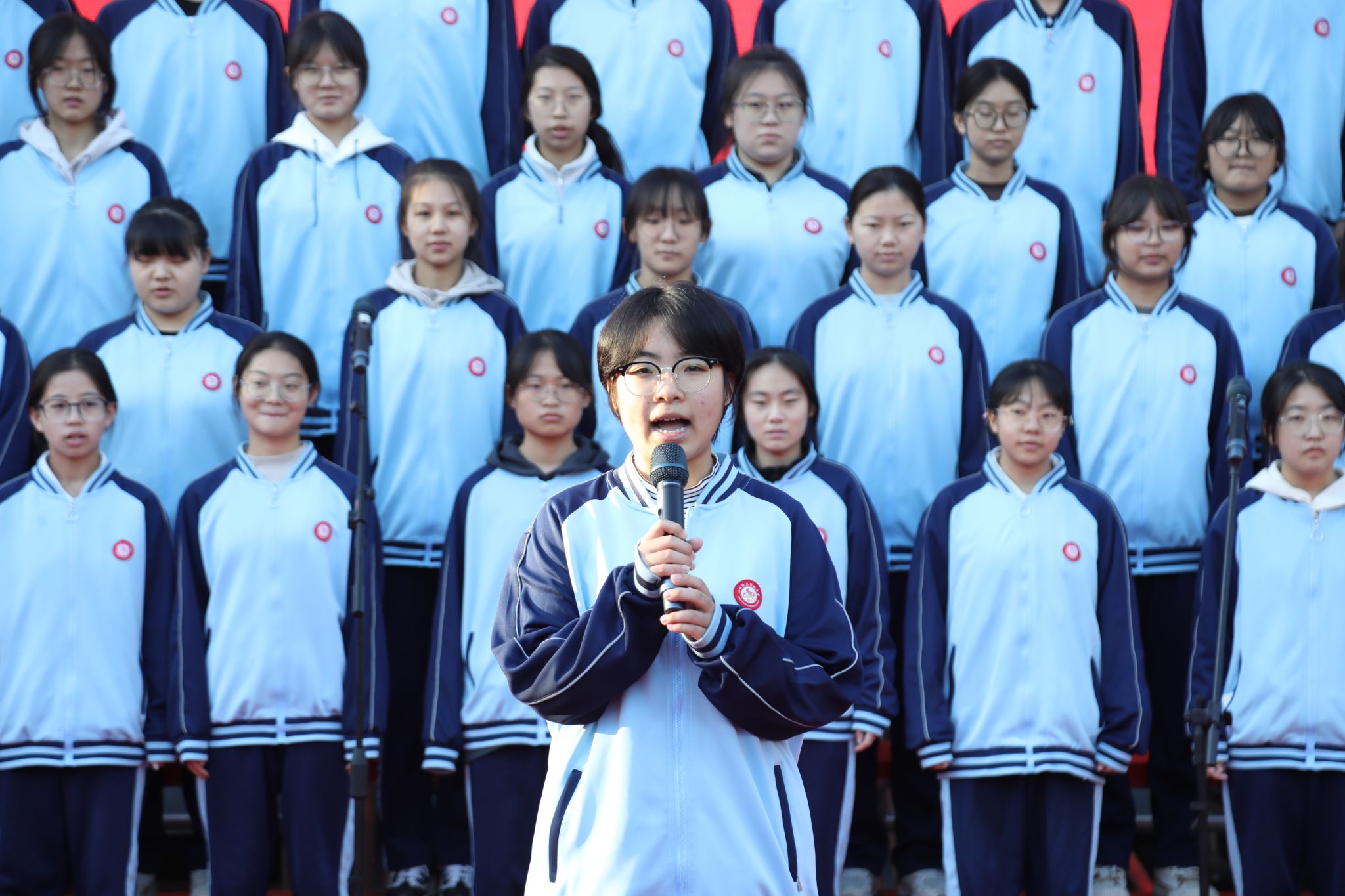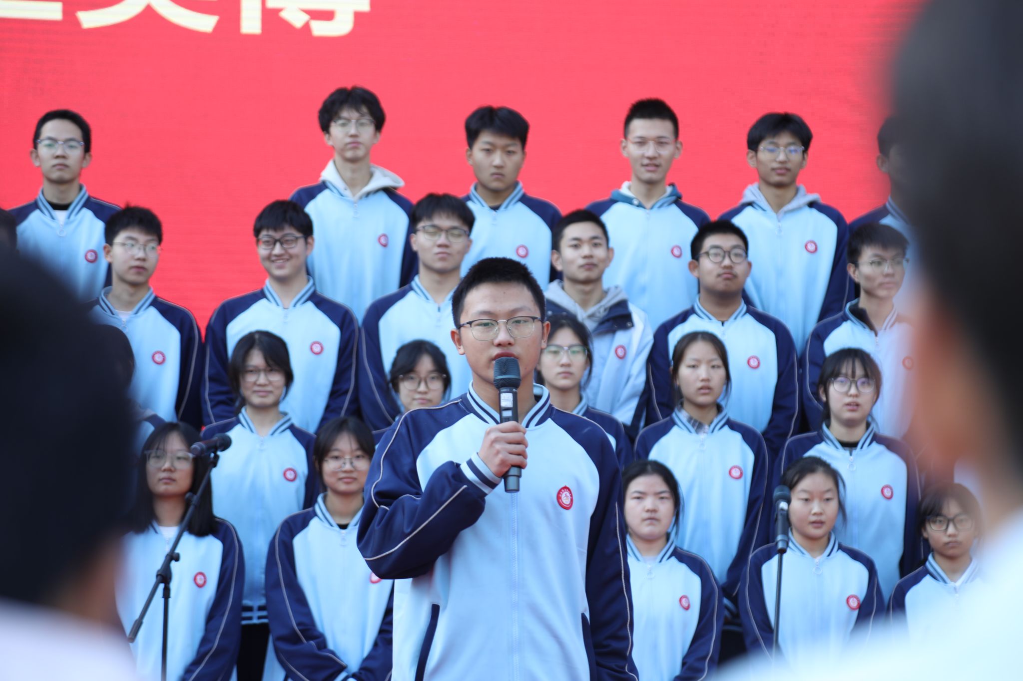 随机背诵,展英文才华在个人抽背环节,17个班级围绕“中华优秀传统文化”与“杰出人物精神”两大核心,流利完成现场背诵。从24 Solar Terms中对古老农耕智慧的生动诠释,到The Chinese Writing System里对书法艺术价值的深情解读;从Young China中“少年强则国强”的壮志呐喊,到Tu Youyou、Huang Danian等篇章里对科研先辈奉献精神的崇高致敬,学子们凭借扎实的语言功底与饱满的情感表达,将中华文化的深厚底蕴与时代精神的磅礴力量融入每一段诵读,既展现了个人英语综合素养,更传递出当代青年对文化传承的坚定信念。