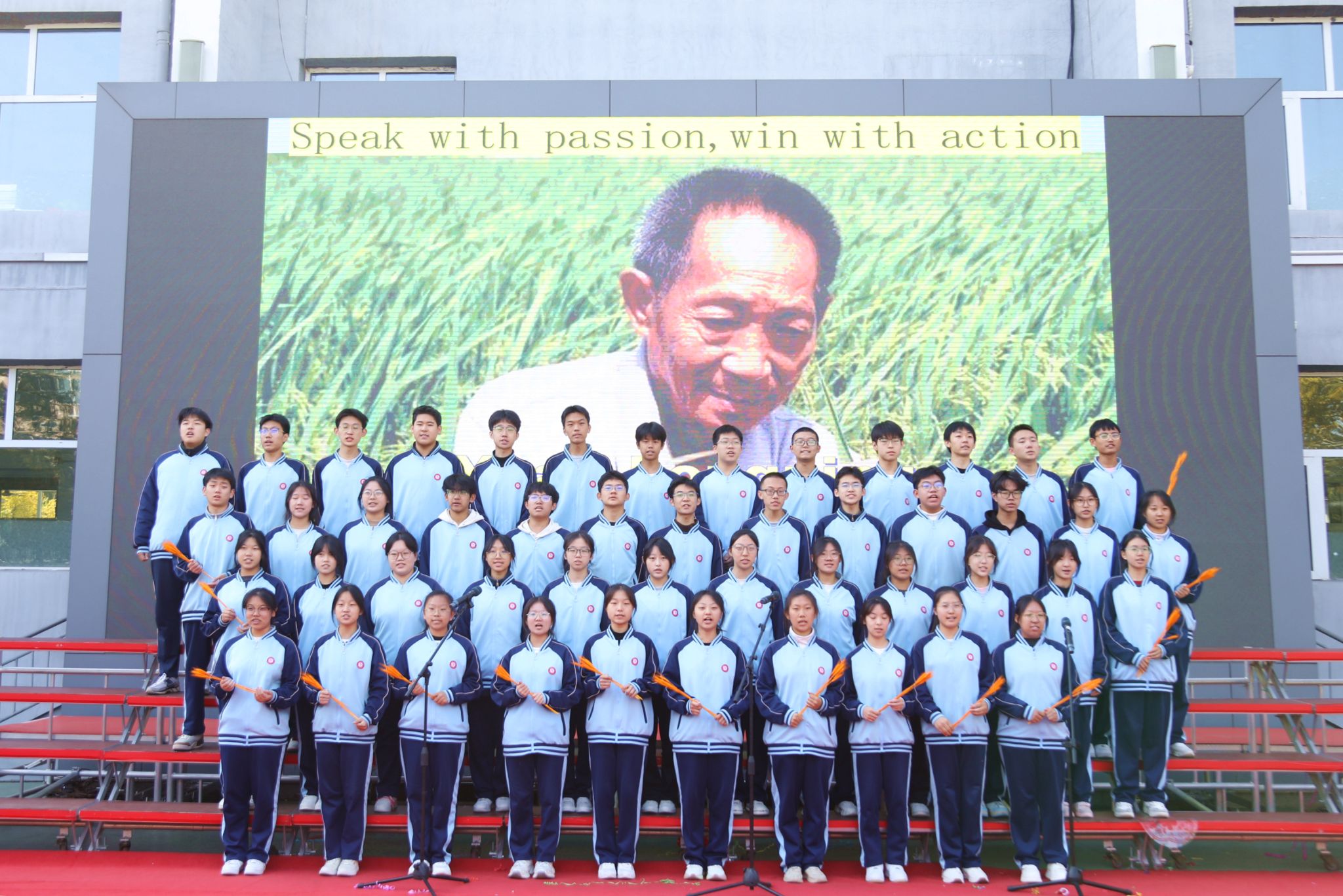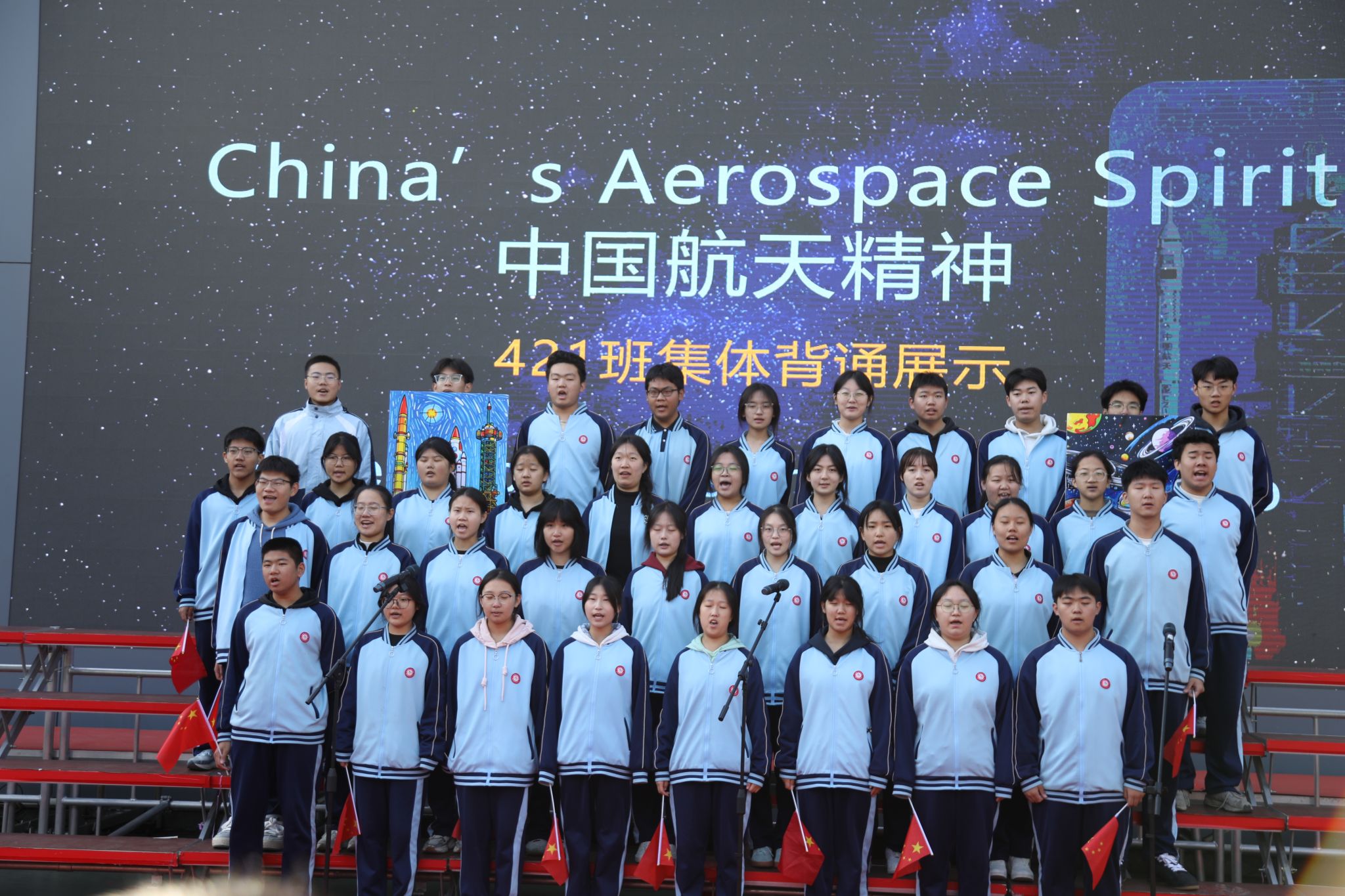 魂・时代之梦讲述新时代的中国故事从“两弹一星”到“嫦娥探月”,从杂交水稻到中国高铁,新时代的中国故事在学子们的诵读中格外动人。421班China’s Aerospace Spirit致敬航天人“敢上九天揽月”的勇气;420班China Highspeed Railway展现“中国速度”背后的创新力量;415班China——My Motherland、412班China’ s National Day字里行间满是对祖国发展的自豪;410班Yuan Longping--the Father of Hybrid Rice更是以深情表达,缅怀“禾下乘凉梦”的追梦者;417班This Is China则用全景视角展现当代中国的生机与活力。