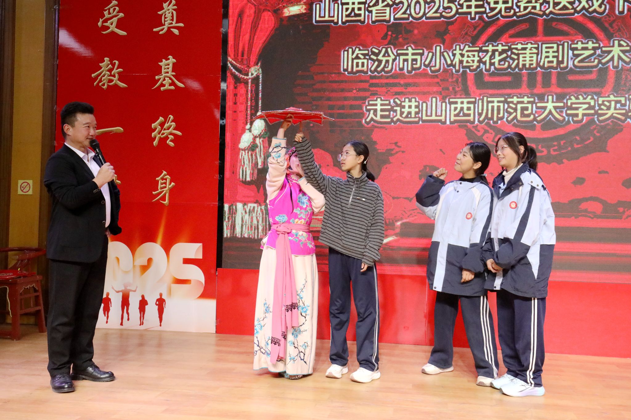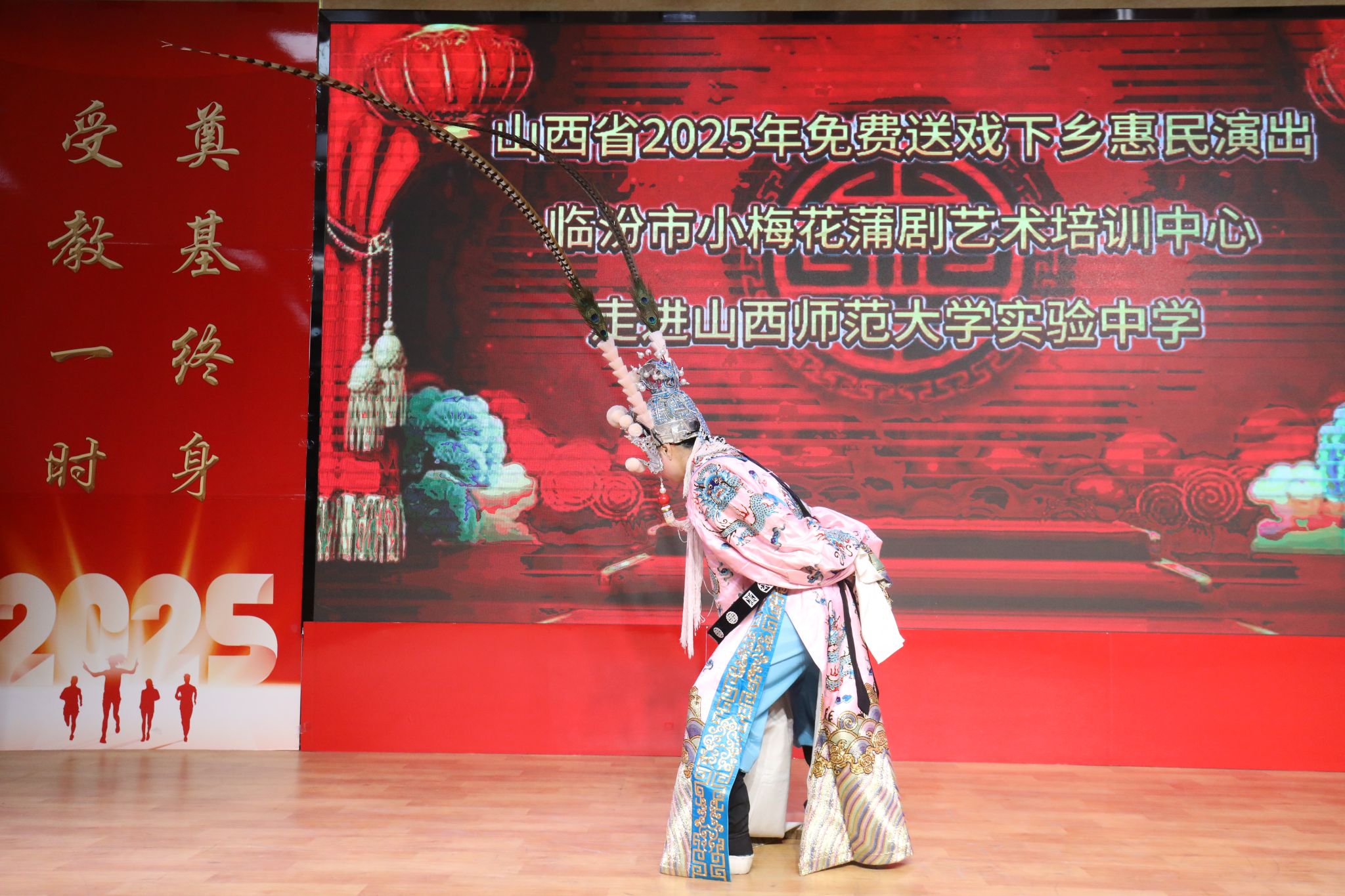 2025年11月19日,临汾市小梅花蒲剧艺术培训中心的青年演员们走进山西师范大学实验中学登台献艺,以韵味醇厚的蒲剧表演,为初一同学带来了一场沉浸式的传统文化盛宴。