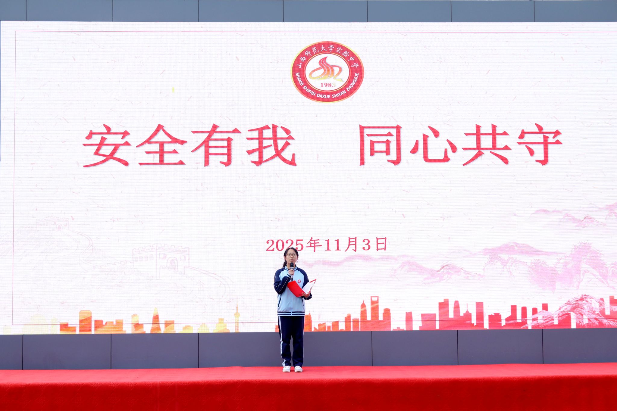 老师们、同学们,安全不是遥远的标语,而是我们每个人肩头沉甸甸的责任。让我们从今天起,做安全的践行者、守护者与倡导者!把“安全有我,同心共守”放在心上,让规范行为成为习惯。你的每一次小心,我的多一份留意,就能汇聚成校园最强大的守护力量。让我们行动起来,共同守护我们挚爱的家园,让平安与每一位师生同行!